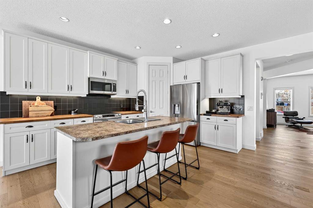 Welcome to Elgin in the community of McKenzie Towne, an address that effortlessly blends timeless architecture with the convenience of upscale urban living, just moments from the shopping, dining, and lifestyle amenities of not only McKenzie Towne, but also the 130th Avenue SE shopping district. This absolutely stunning residence offers almost 3,000 sq ft of fully developed living space, showcasing just how meticulously it has been maintained and thoughtfully updated throughout. From the moment you enter, you’re welcomed by a refined front flex space, perfectly suited for a home office or elegant sitting area, setting the tone for the sophisticated ambiance that carries throughout the home. Elevated finishes, designer lighting, and carefully curated details create a seamless and polished aesthetic. A striking wood countertop anchors the kitchen, now beautifully enhanced with under-cabinet lighting that casts a warm, refined glow, perfectly elevating both form and function in this central gathering space. The thoughtfully designed layout includes a stylish half bath on the main floor, two full bathrooms upstairs, and an additional full bathroom in the fully developed basement, perfectly balancing everyday functionality with elevated comfort. The upper level offers three generously sized bedrooms, including a serene primary retreat, along with a spacious bonus room that opens onto a private balcony, an ideal setting to enjoy your morning coffee or unwind in the evening. Newer plush carpeting and paint, enhances the sense of luxury, while newer zebra blinds throughout provide a sleek, modern touch, allowing for both privacy and beautifully filtered natural light. The fully developed lower level continues the home’s exceptional standard, featuring a fourth bedroom and a full bathroom, ideal for guests, a private office, or a sophisticated retreat for family members. Outdoors, discover your own secluded escape. The beautifully appointed backyard invites relaxation and indulgence, complete with a hot tub. Perfect for unwinding under the stars in every season. An oversized double detached garage offers ample space for vehicles, storage, and more, further enhancing the home’s functionality. A pre-home inspection has already been completed, offering an added layer of confidence as you step into ownership. Perfectly positioned in one of Calgary’s most sought-after communities, this residence offers effortless access to parks, schools, pathways, and an array of amenities, all while maintaining a sense of quiet exclusivity. A rare offering that blends elevated design, impeccable care, and an exceptional lifestyle...this is Elgin living at its finest.