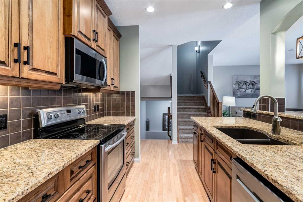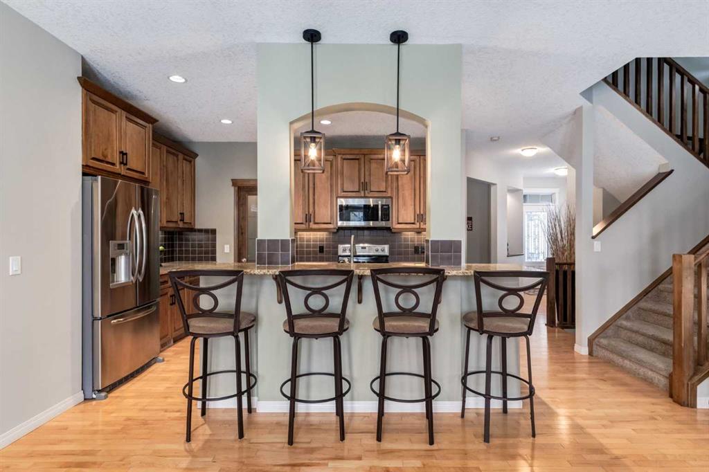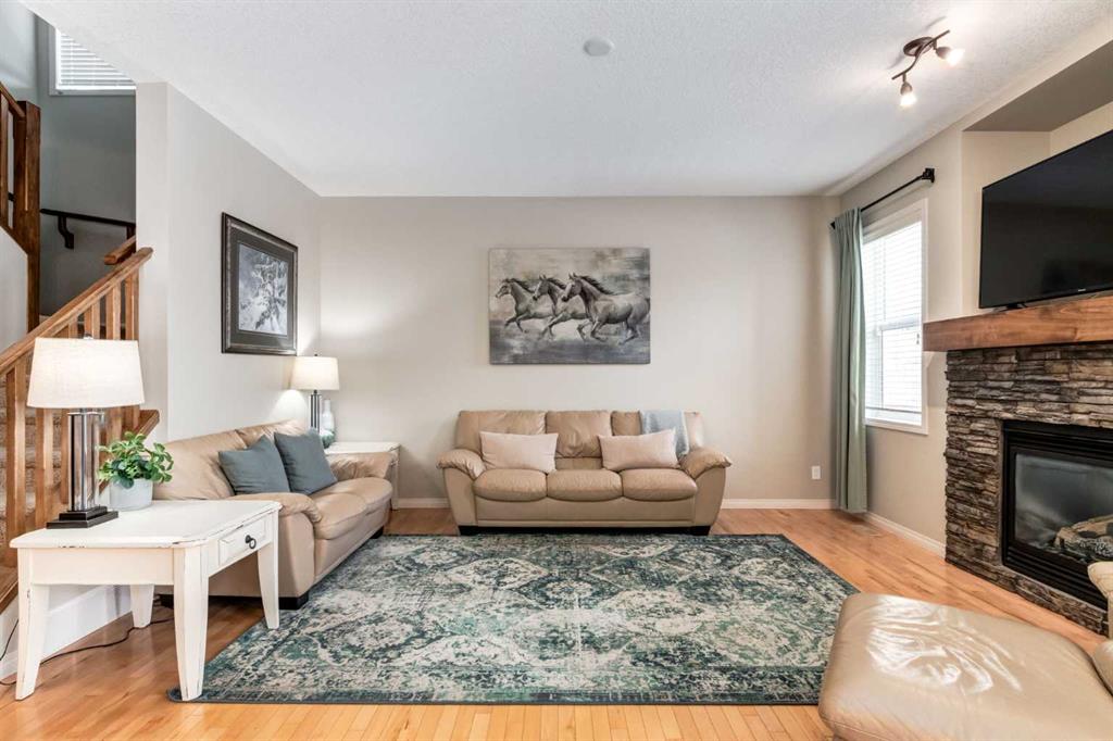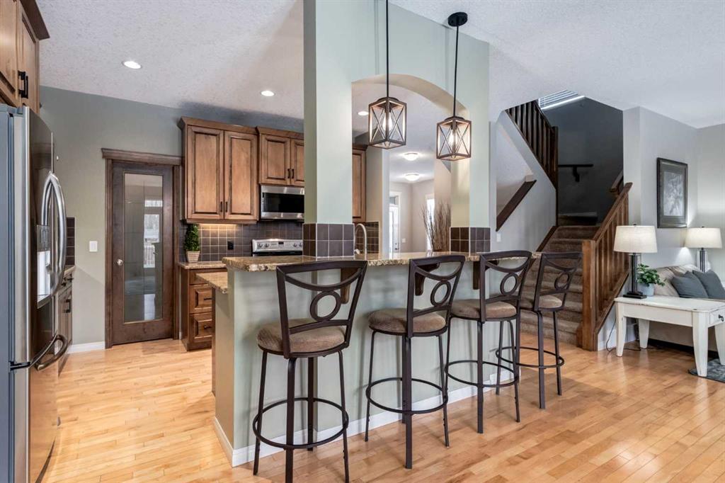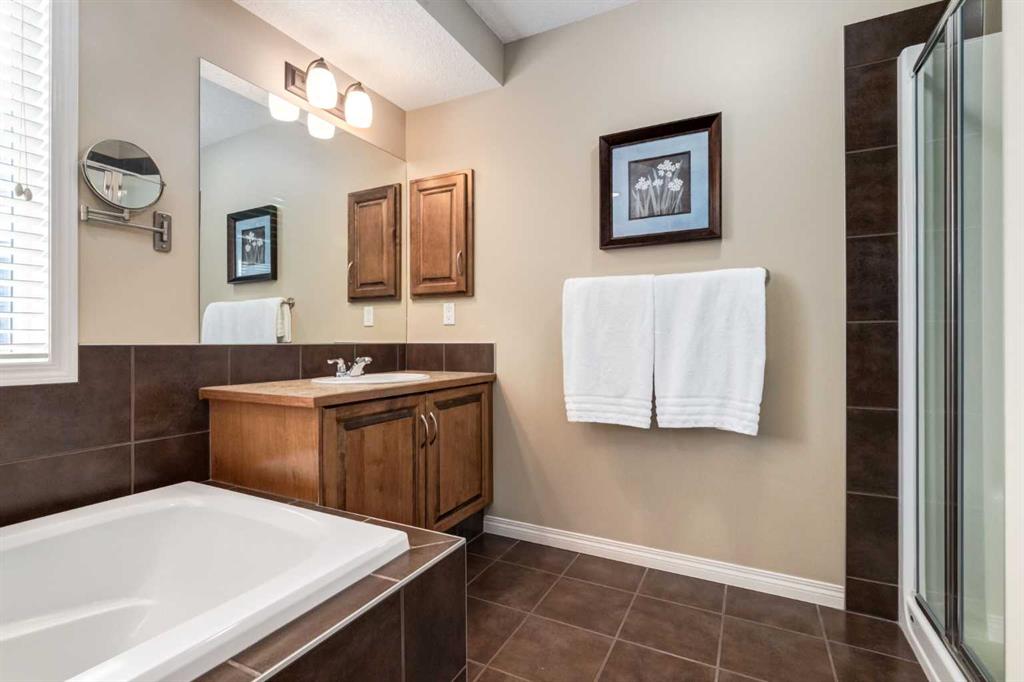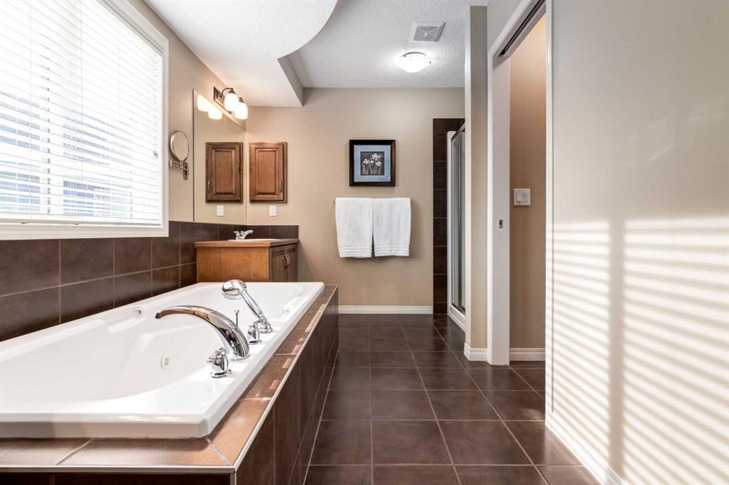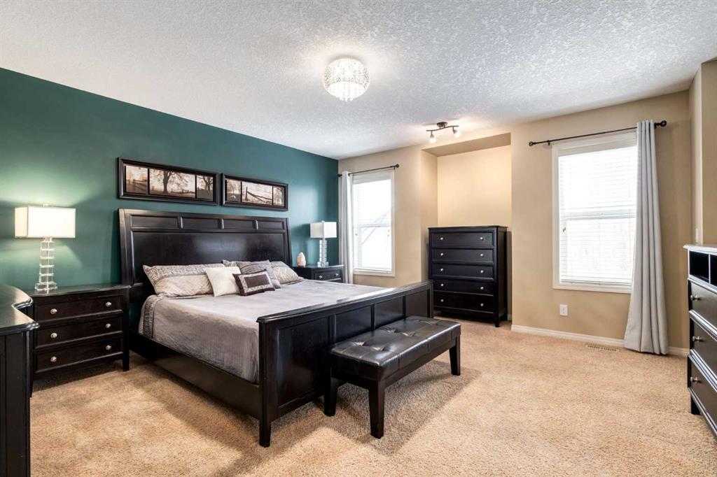 Welcome to this beautifully maintained home located on a quiet cul-de-sac in the award-winning lake community of Mahogany, perfect for young families seeking space, comfort, and convenience. Set on one of the largest pie-shaped lots in Mahogany, this property offers exceptional outdoor space rarely found in the community. The expansive backyard is fully landscaped and designed for both relaxation and practicality, featuring an irrigation system, large storage shed, and a dedicated dog run—ideal for pets, kids, and outdoor entertaining. Inside, the main floor features hardwood and tile flooring throughout, creating a clean and durable living space. The inviting living room is centered around a cozy gas fireplace, while the upgraded kitchen showcases full wood cabinet doors, granite countertops, and walk-in pantry — perfect for hosting family and friends. Upstairs, the spacious master bedroom includes an ensuite that features a double vanity and jetted soaker tub, and a large WIC w/ a built-in closet organizer, providing a comfortable and functional space to unwind. Also upstairs you’ll find a spacious bonus room, perfect for movie nights or a kids’ play area, along with two large additional bedrooms that provide plenty of room for family members. The fully developed basement expands the living space even further with an additional bedroom, full bathroom, and a large family/recreation room, ideal for guests, teenagers, or a home gym or entertainment space. The oversized garage, extended by 4 feet, is a standout feature, complete with built-in cabinets, 220V power, a gas heater with thermostat, and extensive overhead storage shelving, making it perfect for projects, storage, or year-round parking. Several key updates have already been completed in the past year; this includes a new air conditioner, washer & dryer, and dishwasher. Located close to one of Mahogany’s main exits, this home offers the added convenience of easier access in and out of the community—an important advantage during peak traffic times. Living in Mahogany means enjoying Calgary’s largest freshwater lake, beautiful walking pathways, beaches, playgrounds, and vibrant local shops and restaurants, all within minutes of your doorstep.