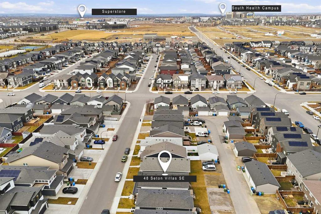 Welcome to 48 Seton Villas SE a home that combines lifestyle, flexibility, and long-term value in one of Calgary’s fastest-growing and most desirable master-planned communities. This beautifully designed detached home offers a functional layout with an open-concept main floor, a bright living area, modern kitchen finishes, and a versatile flex space perfect for a home office, play space, or additional lounge area. The layout flows seamlessly, creating a space that’s ideal for both everyday living and entertaining. Upstairs, you’ll find three spacious bedrooms, a convenient bonus room, and laundry located exactly where you need it on the upper level. The primary suite features generous space, a walk-in closet, and a well appointed ensuite designed for comfort. But what truly sets this home apart is the fully LEGAL one-bedroom basement suite with its own private side entrance. Whether you’re looking to live up and rent down, support multigenerational living, or generate passive income, this legal suite offers flexibility and financial advantage already built in with rental potential around $1,500/month. Located in the heart of Seton, you’ll enjoy quick access to the South Health Campus, one of North America’s largest YMCA facilities, restaurants, grocery stores, walkable amenities, Cineplex VIP, schools, pathways, and future Green Line transit. Outdoor lovers are minutes from Mahogany Lake, Auburn Bay Lake, Fish Creek Park, and Bow River pathways. Whether you're a first-time buyer, investor, or someone looking to secure a home in a thriving community with built-in income potential this property checks every box.