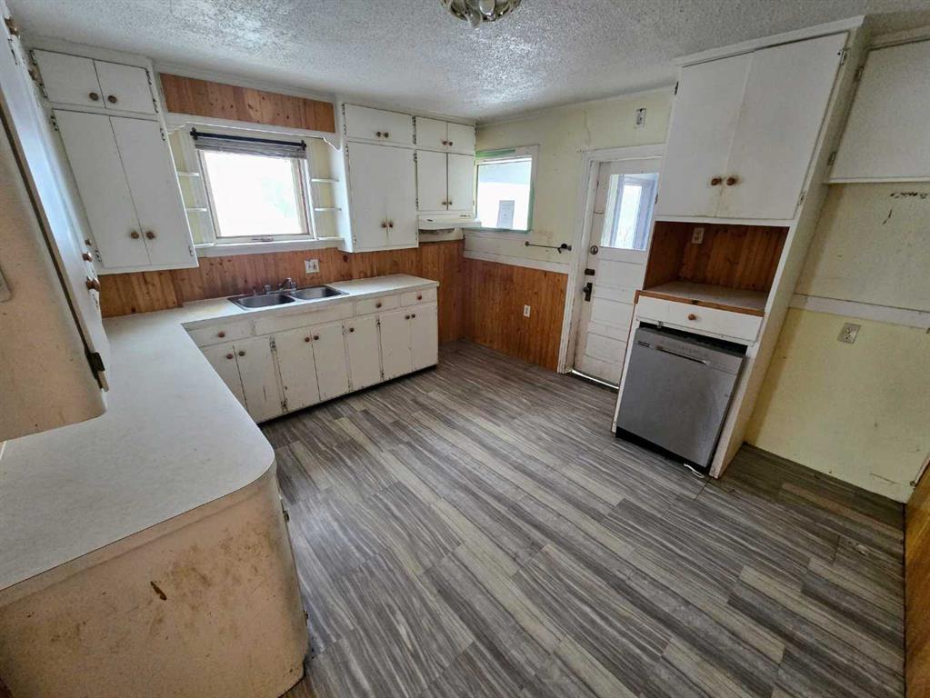 Opportunity awaits at 4802 47 Street in Stettler! Situated on a corner lot with back alley access, this property offers a functional layout and plenty of space both inside and out. The main floor features a bright living and dining area with classic wood flooring and character details, along with a spacious kitchen offering ample cabinetry. You’ll find two bedrooms on the main level plus an additional room that can serve as a third bedroom or home office, along with a 4-piece bathroom. Downstairs, the partially developed basement provides additional living space along with a substantial amount of storage. Outside, enjoy a fully fenced backyard and a detached double garage with convenient alley access, offering excellent space for parking, storage, or projects. With only one direct neighbour, the corner lot adds a sense of openness and flexibility. Located close to shopping, schools, and just minutes from local services, this property is well positioned and ready for its next chapter.