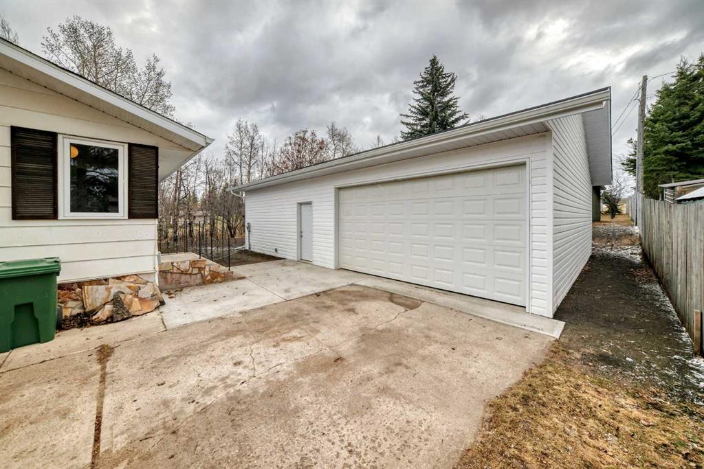 Here is a unique property, perfectly situated on a massive 1 acre lot in a quiet neighbourhood. Well maintained over the years, this 1657 sq. ft Rancher style Bungalow offers an exceptional opportunity for new owners to enjoy its charm, space, and updates. Step inside to a welcoming entryway complete with closet space to keep everything organized. Freshly painted throughout the main floor, the home immediately feels bright and refreshed. The sprawling living room is tucked at the rear of the home, creating a peaceful retreat highlighted by a cozy corner wood-stove and expansive windows that flood the space with natural light. You will love the picturesque views of the private, tree-lined backyard. The kitchen is both functional and inviting, featuring updated flooring, ample cabinetry, and generous counter space, all seamlessly connected to the dining area. New flooring also extends through the entryway and main bathroom. The main floor offers a huge primary bedroom complete with a walk-in closet and convenient ensuite. Two additional generously sized bedrooms and a full bathroom featuring a large tub ideal for relaxing, complete this level. Downstairs, the basement is full of potential, offering plenty of room to expand your living space with options for a large family room, additional bedrooms, or whatever suits your needs. This level currently includes a 3-piece bathroom (recently updated), along with a designated laundry area. Additional upgrades over the past five years include a new furnace, hot water tank, toilets, and updated basement bathroom, while ducts and the furnace have also been professionally cleaned for added peace of mind. Outside, the property truly shines. The oversized lot provides both front and backyard space that has been recently landscaped, with grading and new grass ready to flourish this spring. A new shed adds extra storage, while major exterior improvements include newer shingles (within the last five years), several new windows, a new back door and patio doors, and updated eavestroughing and fascia. Car enthusiasts, hobbyists, or those simply needing extra space will appreciate the impressive new (2025) heated garage/shop measuring 38’11” x 29’, along with a huge concrete pad offering even more functionality. This property combines SPACE, character, and key upgrades in a sought-after location. This would be an incredible place to call home.