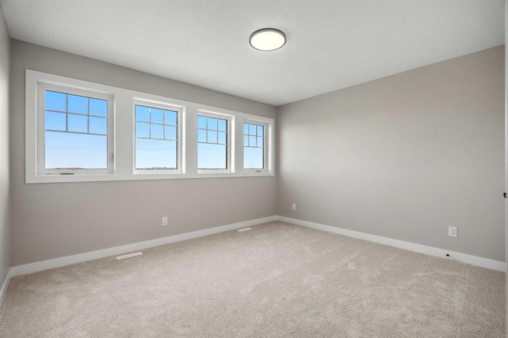 Welcome to the brand new Elliot by Broadview Homes, a thoughtfully designed home offering a side entrance, walk-in closets in every bedroom, and a bonus room on the upper level — all backed by certified Alberta New Home Warranty. Located in Hotchkiss, one of southeast Calgary’s newest and fastest-growing communities, this home pairs modern comfort with smart, family-focused living. Step inside from the covered front porch and past a spacious flex room, ideal for a home office, play area, or quiet reading spot. The open concept kitchen features a central island and generous cabinetry, flowing naturally into the dining nook and large great room with an electric fireplace. A convenient half bath and a well planned rear entry with a large closet complete the main level. The side entrance and basement rough in provide flexibility for future lower level development. Upstairs, two secondary bedrooms each include walk in closets and are separated by a central bonus room, creating privacy and functional space for work or relaxation. A dedicated laundry room adds everyday convenience. The spacious primary suite includes a large walk in closet and a private ensuite with a tub and shower combination. Hotchkiss offers mountain vistas, expansive green spaces, and boardwalks around a 30 acre wetland. Future community plans include parks, gathering areas, schools, and commercial conveniences. Quick access to Stoney Trail and 22X provides easy connections to shopping, South Health Campus, the Seton YMCA, and more. Experience fresh, modern living in one of southeast Calgary's newest planned communities.