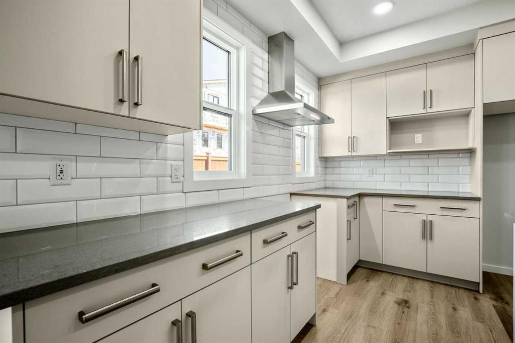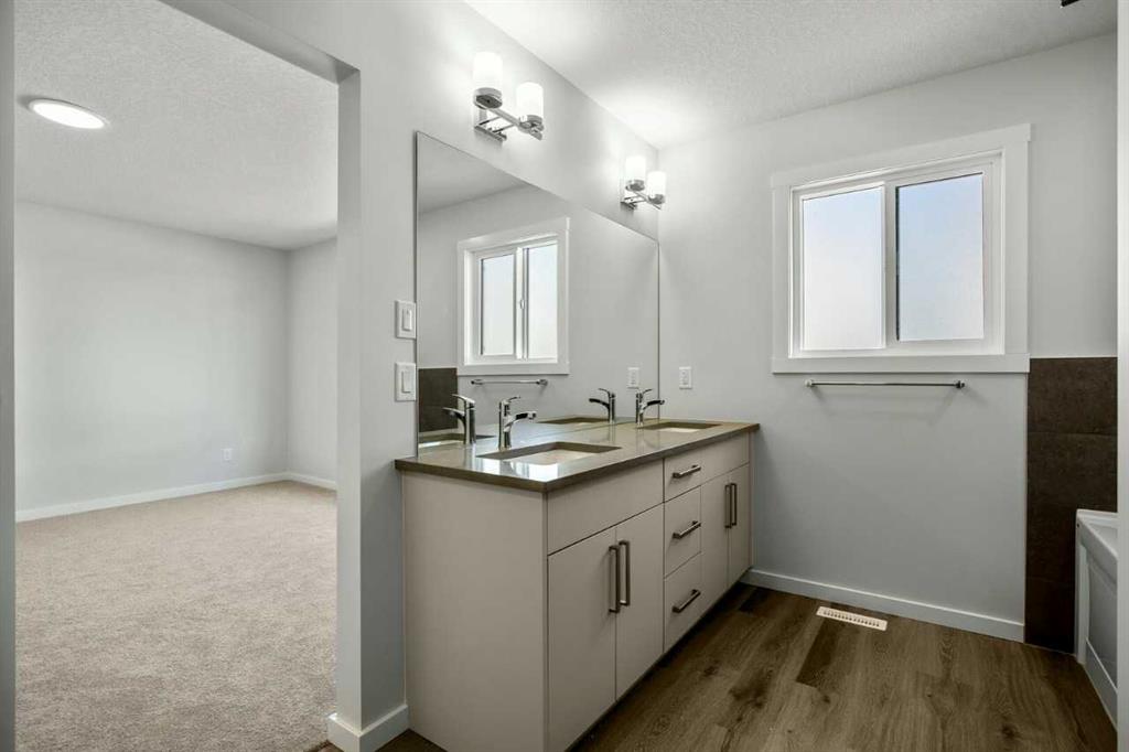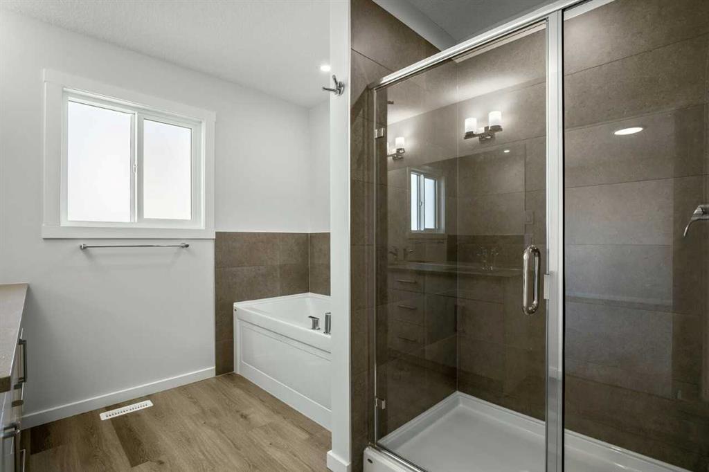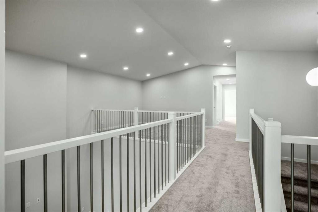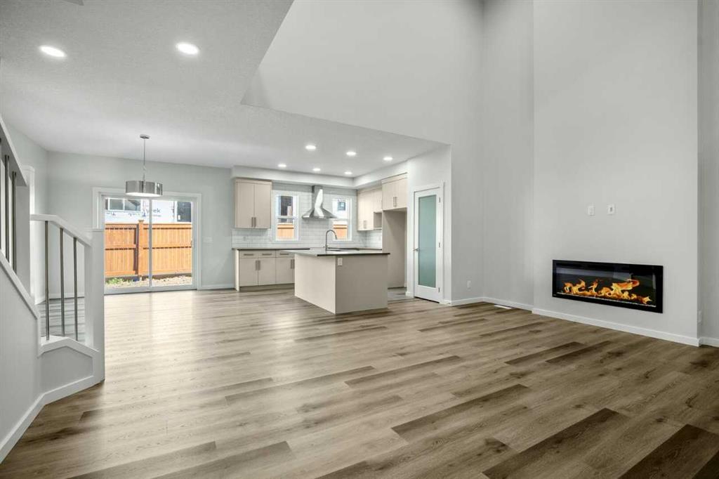 This stunning 2-storey on a traditional lot offers a side entrance for potential future development + main floor bedroom with full bath. The dramatic open-to-below foyer with vaulted ceilings and a two-storey fireplace create an airy, luxurious ambiance. The chef’s kitchen features ceiling-height cabinetry, a chimney hood fan, and soft-close drawers, while abundant windows fill the home with natural light. Upstairs, retreat to the spa-inspired 5-piece ensuite with dual sinks and walk-in shower. Premium upgrades include metal spindle railings, 9’ knockdown ceilings, undermount sinks, and Smart Home technology. A 9’ basement foundation provides superior ceiling height and endless future potential. Located in the vibrant Heartwood community of SE Calgary, you’re just steps from the Seton YMCA, South Health Campus Hospital, and premier shopping. Photos are representative.