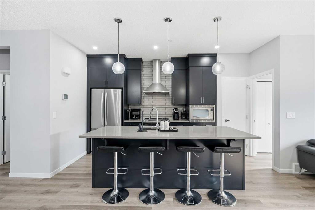 Welcome to this beautifully built home in the vibrant community of Livingston, offering a thoughtfully designed layout and the added value of a fully legal 1-bedroom basement suite. With 3 bedrooms and 2.5 bathrooms above grade, this property delivers both style and versatility for homeowners and investors alike. The main level showcases a refined, contemporary aesthetic with numerous upgrades throughout, including designer cabinet colours, elevated tile selections, and cohesive finishes that create a clean, modern feel. Upstairs, you’ll find three well-proportioned bedrooms, including a spacious primary retreat complete with a private ensuite and ample closet space. The additional bedrooms, bonus room and full bathroom are thoughtfully positioned to accommodate family or guests. The fully legal basement suite offers a private 1-bedroom, 1-bathroom layout with its own entrance and separate laundry, providing excellent potential for rental income, multigenerational living, or added flexibility. Outside, enjoy a professionally built tiered deck that extends your living space and creates a perfect setting for summer gatherings or backyard lounging. The oversized garage adds exceptional functionality with ample room for vehicles and storage. New siding and singles in 2025. Located in Livingston, a growing north Calgary community known for its amenities, green spaces, and access to major routes, this home presents a complete package of design, comfort, and income potential.