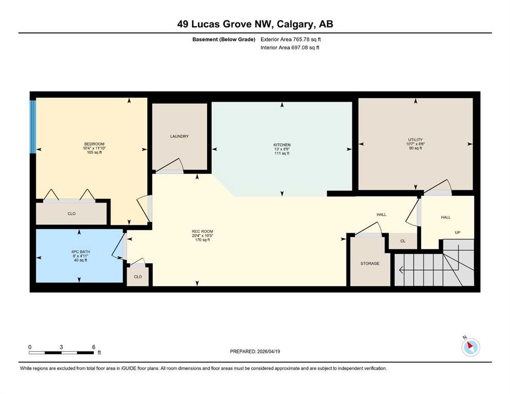| 3pc Ensuite bath | 4`11" x 9`1" | Upper |