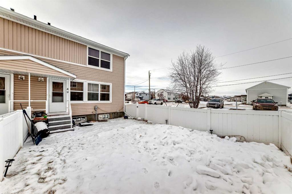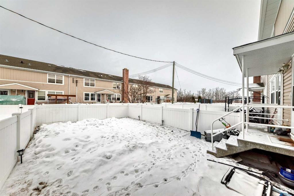 END UNIT in Quiet Springbrook offering Affordable Living Just Minutes from Red Deer. This charming and well maintained home offers an excellent opportunity for affordable living in the peaceful community of Springbrook. Pride of ownership is evident throughout. The upper level features 3 bedrooms and a full 4-piece bathroom, making it ideal for families, first time buyers, or investors. The bright and spacious main floor showcases beautiful original maple hardwood flooring and a comfortable living area. The updated kitchen provides excellent workspace, a functional island with power, ample pantry storage, and flows seamlessly into the generous dining area. A garden door leads to the west-facing backyard, which is fully landscaped and fenced . Downstairs, the partially finished basement includes a large family room, under stair storage/cold room, and a spacious laundry area, offering great additional living and storage space. Condo fees provide value and include water, sewer, heat, garbage removal, exterior maintenance, professional management, reserve fund contributions, and common area maintenance. Your only additional utilities are electricity and TV/internet. Assigned parking stall #65 completes this fantastic package.