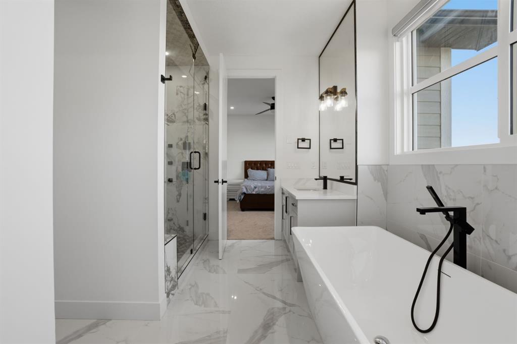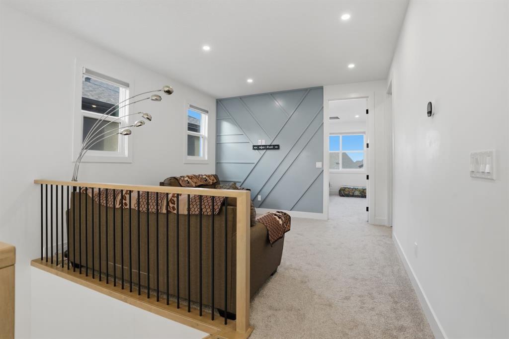 Main Level Bedroom | 4pc Bath | Top of the Line Finishes Throughout | Chef's Kitchen | Spice Kitchen | Quartz Countertops | Stainless Steel Appliances | Gas Stove| Electric Cooktop | Full Height Cabinets | Pantry | Open Floor Plan | Large Windows | Wide Plank LVP & Plush Carpet Flooring | Modern Pendant Lighting | Electric Fireplace with Floor to Ceiling Tile Accent Wall | 2 Upper Level Primary Bedrooms & 2 Additional Bedrooms | 3 Full Upper Level Baths | Upper Bonus Room with feature wall | Walk-in Laundry Room with Sink & Cabinetry | Separate Entry | Upper Deck | BBQ Gas Line | Triple Car Garage | Expansive Backyard | Incredible Location. Welcome to this stunning residence offering 2,689.37 sq. ft. of impeccably finished living space, with unfinished walkout basement, in the prestigious Waterford community of Chestermere — a perfect blend of elegance, comfort, and functionality. As you enter, you’re greeted by an open-to-above foyer filled with natural light. This level has a bedroom & 3pc bath making it great for multigenerational living. The heart of the home is the open concept chef's kitchen, dining & living rooms. The kitchen is outfitted with quartz countertops, full height cabinets, electric cooktop, built-in oven and microwave, a chimney range hood. The centre island for barstool seating is the perfect space for small meals or socializing while you host. The dining room has sliding glass doors to the deck with a gas BBQ line for outdoor cooking! The living room is centred with an electric fireplace & floor to ceiling tile accent wall behind. Head upstairs to be greeted with a bonus room with feature wall & plush carpet flooring. The 4 bedrooms on this level are broken down into 2 primary & 2 additional. The first primary bedroom is a personal oasis with a spa inspired 5pc ensuite with a deep soaking tub, a walk-in shower with a built-in bench & dual vanities. The 2nd primary has its own 4pc ensuite. The 2 additional bedrooms share the main 4pc bath. The upper level full laundry has a rinse sink & cabinet storage. Step outside to the expansive backyard with incredible lawn space. Everything you need is within reach; transit, parks, schools & all amenities. Hurry & book your showing today!