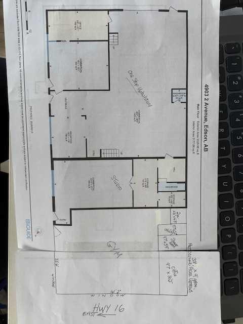 VERSATILE Commercial Building with PRIME highway frontage!! Over 5000 square feet of retail space available, this stand alone building sits prominently on the corner of Hwy 16 and 49th Street In the downtown business core of Edson, Alberta. Newer roof (approximately 3 years old). Large windows on Hwy 16 for great exposure of your business. Lots of parking on 49th and around back of the Building. The property currently has 3 businesses including a gym, a photography studio and an upholstery store ALL with separate entrances. The Upholstery business area has a large mezanine, two offices, a reception area, a huge work area and a garage door for the convenience of pulling in a vehicle/boat/motorbike and furniture for indoor upholstering also has a 2 piece bathroom. The Studio has two storage rooms, a 2 piece bathroom, shower room and photography/work room. The front space (currently used as a gym) has a 33 x 41 approximate area for the gym plus a shower room, office, a 2 pece bathroom and mezzanine area for storage. This highly adaptable building features open floorplans, ample natural light and modern infrastructure making it ideal for a wide range of uses such as office, retail, creative studios, coworking hubs or even event venues and great show room space. It's prime location and flexible layout make it an ideal opportunity for entrepreneurs and investors alike.