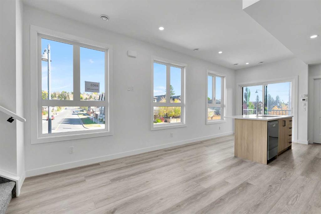 Brand New Modern Living in the Heart of Montgomery! Experience a sophisticated lifestyle in this pristine, move-in-ready unit. A bright and welcoming foyer greets you with direct access to the single-car garage and a convenient utility room. Follow the stylish vinyl plank flooring up to the main living area, where three expansive picture windows flood the space with natural light. The open-concept layout is anchored by a chef-inspired kitchen featuring floor-to-ceiling cabinetry, gleaming quartz countertops, premium stainless steel appliances, and a central island with seating for three. Step out onto your private deck—the ideal spot for morning coffee or unwinding in the evening. The upper level offers a cozy retreat with plush carpeting and two generously sized bedrooms, both equipped with built-in closet organizers and served by a sleek 3-piece bathroom. Located in a sought-after community, you are steps from local shops and moments from the active lifestyle offered by Shouldice Park and the Bow River pathways. With quick access to the Trans-Canada and Stoney Trail, this home offers the perfect blend of modern luxury and exceptional convenience. The building is protected by a full New Home Warranty, offering: 2 Years for Labour and Materials, 2 Years for Delivery and Distribution Systems, 5 Years for Building Envelope Protection, and 10 Years for Major Structural Components. A secure, high-yield asset in a prime location!