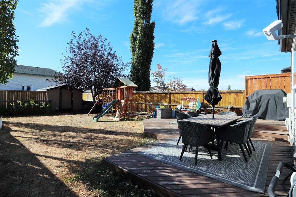 **Spacious Half Duplex with Large Lot and Beautiful Upgrades!** No Condo fees! This home is perfect for families or anyone seeking comfort and functionality. Step into a the bright, welcoming entryway, featuring a stylish wainscot accent wall. The living room offers a cozy atmosphere with a bay window, built-in cabinets and shelving, and a charming electric fireplace. The family-sized kitchen is ideal for cooking and entertaining, complete with ample counter space plus an island and a pantry. The adjoining dining area overlooks the fenced backyard, creating a perfect setting for family meals. The back entrance provides convenient access to the laundry area and a main floor bathroom. Upstairs, you’ll find a spacious primary bedroom with a wall-length closet, two additional bedrooms, and a large 4-piece bathroom featuring a linen closet for extra storage. The fully finished basement adds even more living space, including a family room, fourth bedroom, and a recently updated 3-piece bathroom with new tile, vanity/sink and toilet. Other upgrades include, new carpet on stairs and 2nd level and new toilets in all bathrooms. Enjoy outdoor living in the private fenced yard, perfect for kids or entertaining guests on the large deck. The storage shed has electricity plus there's two parking spaces off the back alley. Stay comfortable in the summer months with central air conditioning!
