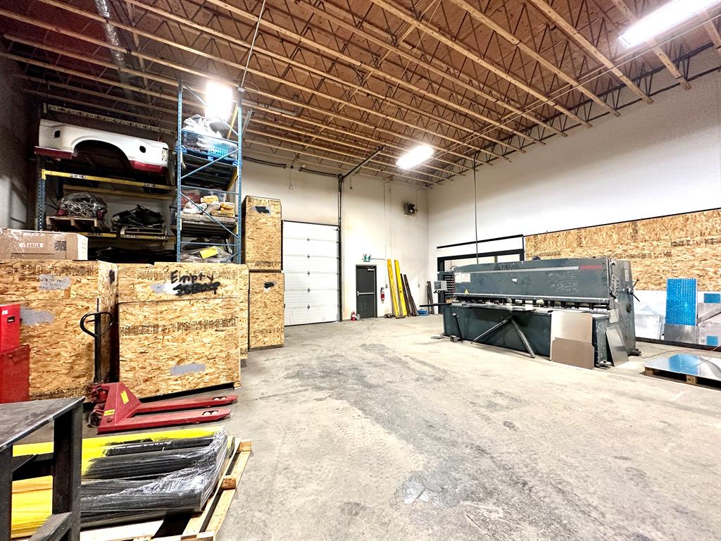 COMPLETELY RENOVATED SHOP/ OFFICE SPACE in Riverside Light Industrial Park. The bay 5 (5,178 sq ft) and a part of the back of bay 6 (2,454 sq ft) is comprised of a total of 7,632 SF on the main shop, office space that includes a reception area, office, storage room and a total of three washrooms and 6700+/- sq ft of total shop space. There is one 14' high overhead door at the front, two additional 12' OHD's at the rear, a dual compartment sump w/ oil separator and grating for floor drains, lots of paved parking out front with newer asphalt. secured yard space around the back/ side. In addition, there's a 510 SF developed, mezzanine, that includes an open space, two offices for staff room, kitchen area or just more office space and another washroom w/ shower. This condo bay is perfect for any Fabrication, mechanic or Tradesman (plumbing, electrical or auto body shop. Loads of power and 220v plugs everywhere, air/ water lines plumbed in throughout, Overhead Resnor shop heaters, roof-top HVAC units for office heat/ AC. Additional rent of $3.75 for the 2025 budget year.