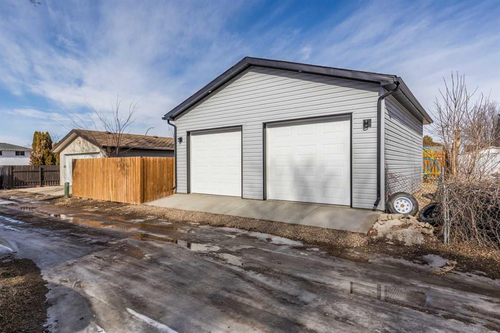 Beautiful, fun and move-in ready!! This inviting bi-level offers space, function, and great curb appeal. Get your cameras ready!! Inside, you’ll appreciate the bright, neutral finishes, light flooring, and stylish black railing that adds a modern touch. The upper level offers an open-concept living, dining, and kitchen area, with patio doors leading to the spacious back deck. The kitchen is bright and functional, with white cabinetry, quartz countertops, and a view of the yard! Two spacious bedrooms and a four-piece bathroom complete the main level. Downstairs, the lower level includes a large family room with flex space, two additional bedrooms, a three-piece bathroom with a large shower, plus laundry and storage. The front yard features a concrete driveway with room for RV parking, while the fully fenced backyard includes low-maintenance outdoor space to enjoy. Bonus! Recent updates include shingles (3 years old) and a brand new high-efficiency furnace (2026). A standout feature is the Oversized double detached heated garage with Side Drive Garage Door Openers. This is a well-cared-for home with plenty of room to enjoy, inside and out, at an amazing price point!!