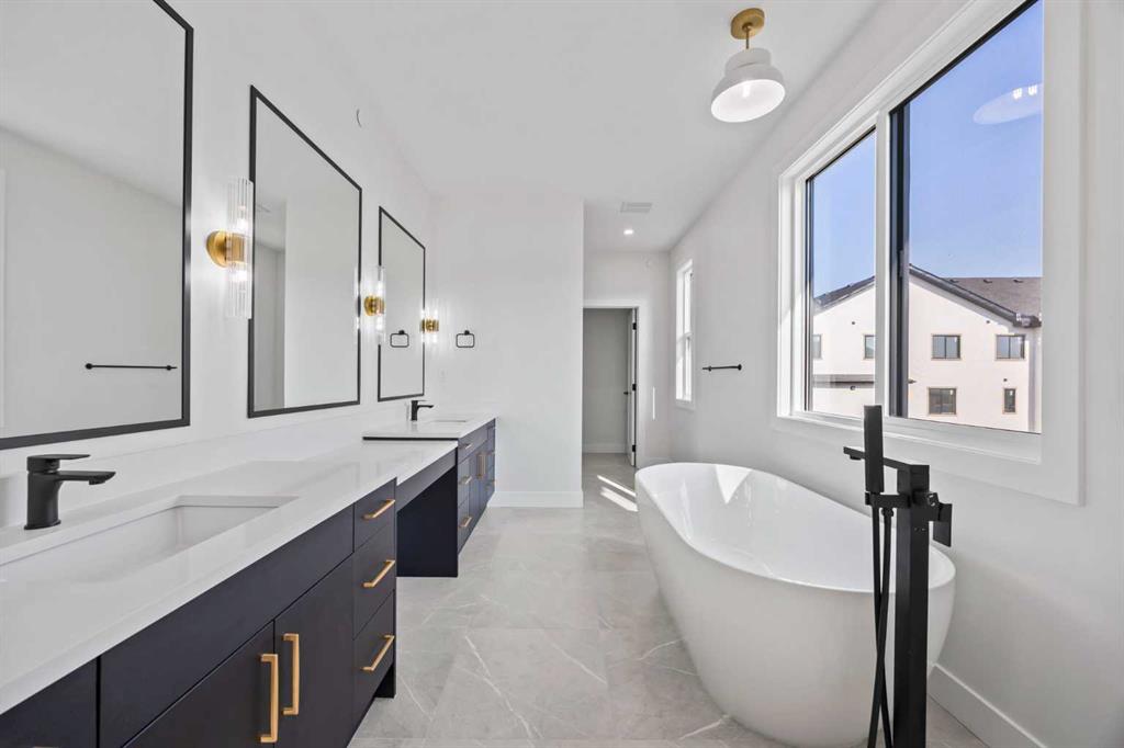 Welcome to the brand new development of Knightsbridge in Cambridge Park. Minutes away from access to Stoney Trail and East Hills shopping centre. The Whitehaven is a stunning estate home designed to blend luxury and practicality. Set on a generous 6027 sq ft lot, this home provides an expansive backyard and a side-drive triple car garage. These are not your typical cookie cutter homes. With 3,203 sq ft of living space, this custom-built masterpiece features 5 spacious bedrooms and 4 beautifully designed bathrooms, offering ample room for family and guests. This home is loaded with upgrades including: Main floor full bath, Jack and Jill ensuites for added convenience, High ceilings & a Spice kitchen to enhance your culinary experiences. Inside, the main floor exudes elegance with rich hardwood flooring and 9 ft ceilings with 8 ft doors, and striking black-framed windows that invite natural light. The gourmet kitchen is a chef’s dream, complete with an oversized island, a secondary spice kitchen, sleek stainless steel appliances. An open concept formal dining and living area set the stage for gatherings. The main floor also includes a flex room as well as a 4 pc bathroom. The primary suite on the upper floors is a true sanctuary with a freestanding tub and a custom-built closet. The home’s thoughtful design continues with 3 more generous sized bedrooms on the second floor, a bonus room for entertaining, a Jack & Jill ensuite bathroom for convenience, as well as a second floor laundry room. . Step outside to enjoy a completed rear deck with steps leading to a private outdoor oasis. This home also offers a triple attached garage allowing plenty of space for extra parking. This community is within minutes to Calgary, Chestermere, and East Hills, 18 minutes to Downtown Calgary, and provides quick access to Stoney Trail, Highway 1, and McKnight Blvd making it easy to get anywhere in and around the city. Located near shopping centres, Costco, public and private schools, Khalsa school's, parks, and many other amenities, while still offering quiet country-living with wide open green spaces, walking paths, and playgrounds.