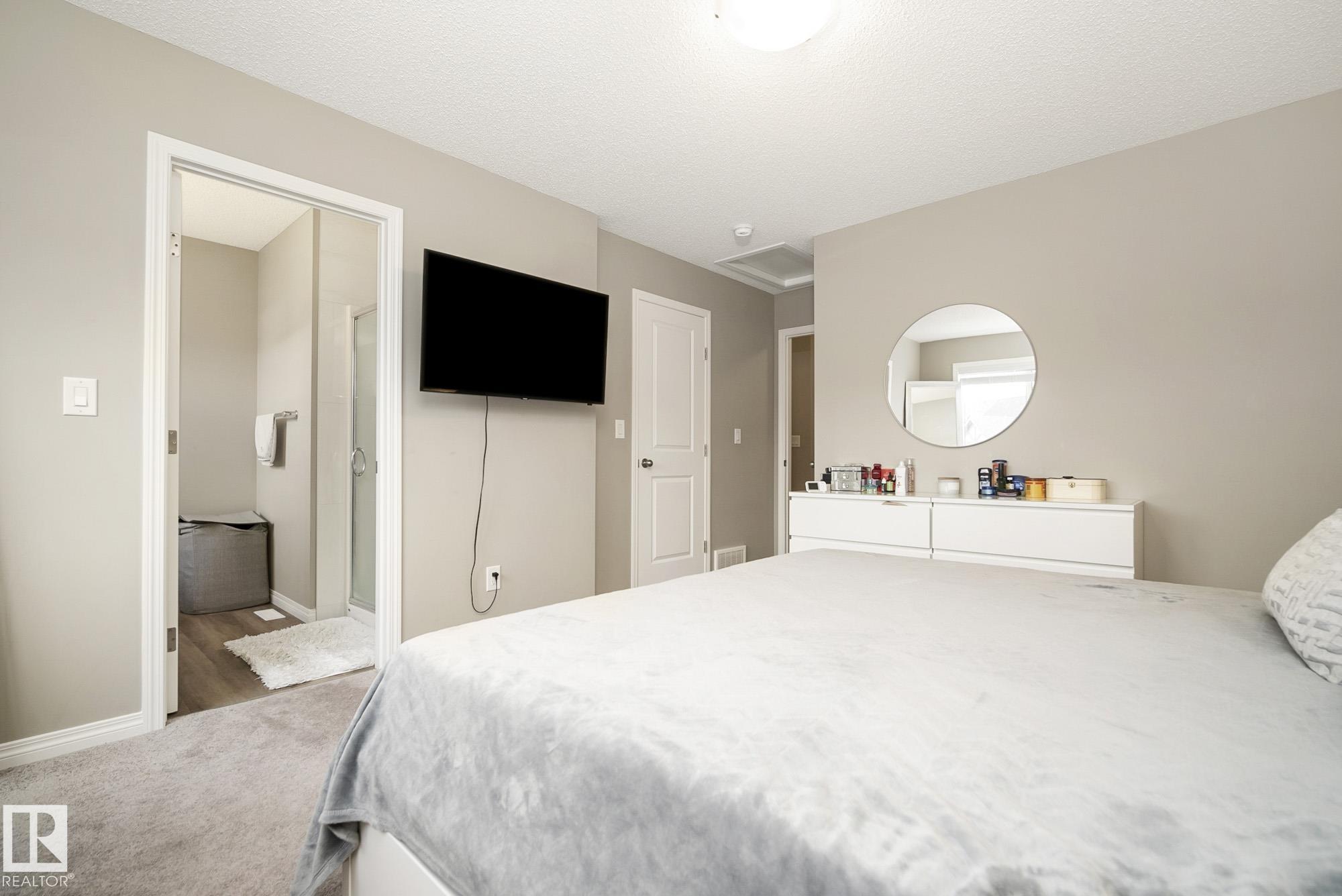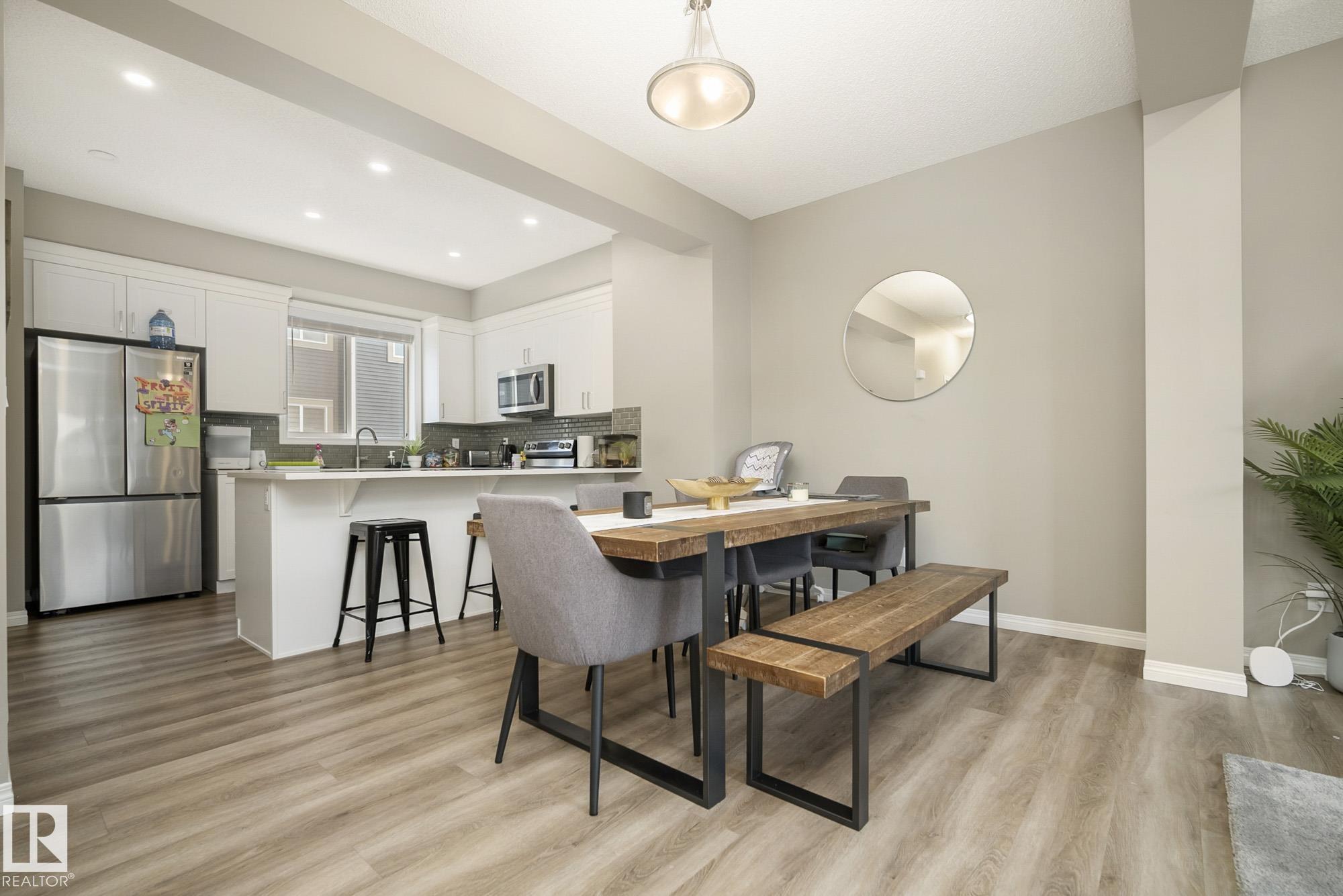 This modern NW-facing townhome is located in the desirable Walker Lakes community and overlooks a peaceful greenspace. The home features a bright, open-concept 3-story layout with natural light throughout and central air conditioning. The entry floor features a versatile den, perfect for a home office or additional bedroom. The second floor offers the main living area with a stylish kitchen featuring white cabinetry, quartz countertops, a large island with breakfast bar, a cozy fireplace, in-suite laundry, and a living area that opens to a private balcony with a natural gas hookup for BBQs. Upstairs, you’ll find three generously sized bedrooms, including a spacious primary suite with a walk-in closet and ensuite bathroom. The home also includes 2.5 bathrooms, storage, and a double attached garage. Close to schools, shopping, restaurants, parks, and everyday amenities, this well-maintained townhome offers modern comfort in a vibrant neighbourhood.