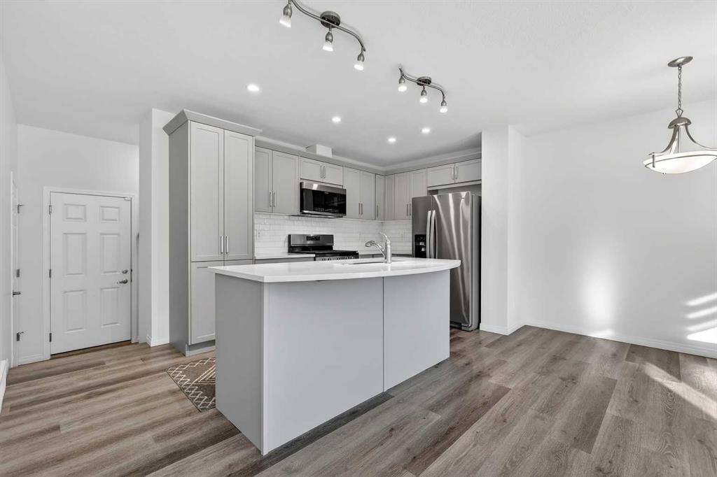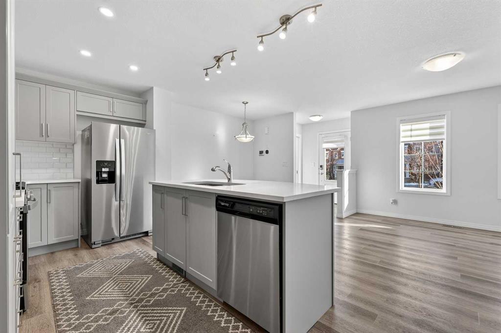 Welcome to 50 Yorkville Blvd SW — a like-new, move-in-ready townhome in SW Calgary offering a smart layout, quality upgrades, and an unbeatable location in a family-friendly, walkable community. This 3 bedroom, 2.5 bathroom home features 1,441 sq ft of functional living space plus an unfinished basement with incredible potential. Inside, enjoy triple-pane windows and upgraded zebra blinds throughout, luxury vinyl plank flooring, knockdown ceilings, and a bright open-concept main floor. The stylish kitchen offers stainless steel appliances including a gas stove, a large center island with eating bar, subway tile backsplash, and soft-close cabinetry. The dining area and spacious living room create the perfect flow for daily living and entertaining. A half bath and mudroom with built-in shelving and coat hooks add everyday convenience. Upstairs, you’ll find a spacious laundry room with LG washer/dryer and shelving, a large linen closet, and three generous bedrooms. The primary suite includes a west-facing balcony with Duradek, a massive walk-in closet, and a 5-piece ensuite with dual vanities and a fully tiled, floor-to-ceiling tub shower combo. A second 4-piece bath also features a tiled tub shower combo and full-sized vanity. Built for efficiency and comfort with Hardie board siding, a high-efficiency furnace, and electric hot water heater. The double attached garage offers secure parking, and the large unfinished basement is ready for future development. Perfectly located with direct access to 22X, Stoney Trail, and Macleod Trail, near Spruce Meadows, Fish Creek Park, walking paths, parks, and shopping at Silverado Marketplace and Shawnessy Towne Centre. A fantastic investment property or family-friendly home in a connected SW community.