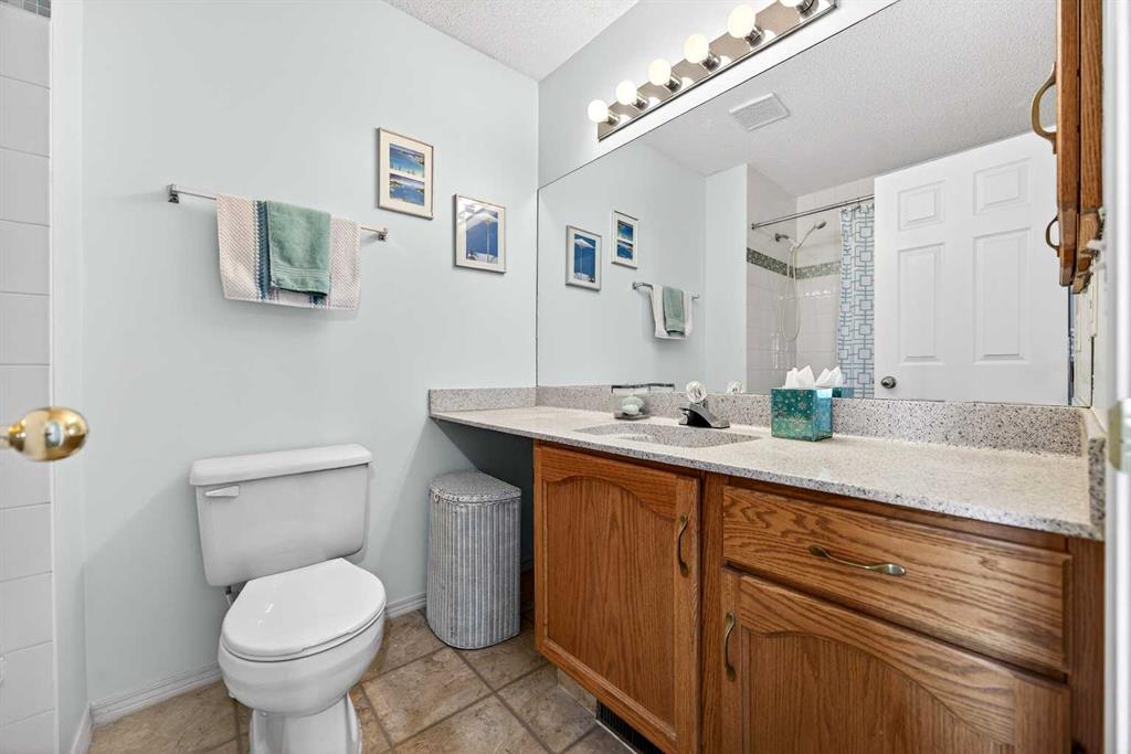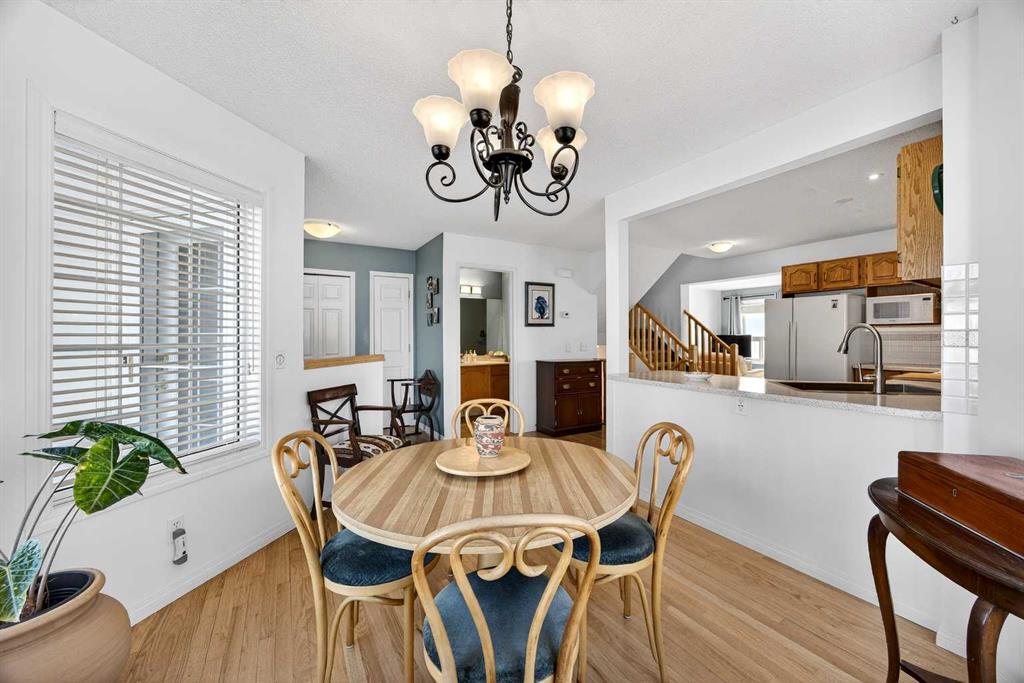 SUNNY END UNIT awaits! This 2-storey, 3-bedroom townhome is an amazing find. Main floor with OAK HARDWOOD floors, new windows (2019) bring in in SOUTH and WEST sunlight. Lots of room for your dining table and entertaining. Kitchen is in the centre of the floorplan with oak cabinetry, newer sink, new oven(2025),dishwasher (2020), microwave(2019), lots of task lighting, room for stools at the counter. SPACIOUS living room with GAS FIREPLACE flanked on each side by lovely windows door to your sunny SOUTH deck, and no neighbours behind. 2-piece powder room, pantry, large closet completes the main floor. Upstairs are three generous-sized bedrooms. Primary is large enough for KING bed, 3-piece ENSUITE w/new shower (2019) and mountain VIEW. Second bedroom also large enough for KING bed! Third bedroom with laminate flooring could also be office or craft room. Fully FINISHED BASEMENT has LOADS of STORAGE, flex room, LAUNDRY w/SINK, and REC ROOM. PolyB has been FULLY REMOVED (2025)! HWT (2019). All this with a front ATTACHED GARAGE, extra parking on the DRIVEWAY, in a well run condo. Welcome to Citadel Terrace: a family and PET-friendly complex surrounded by greenspace with easy access to transit, schools and shopping.