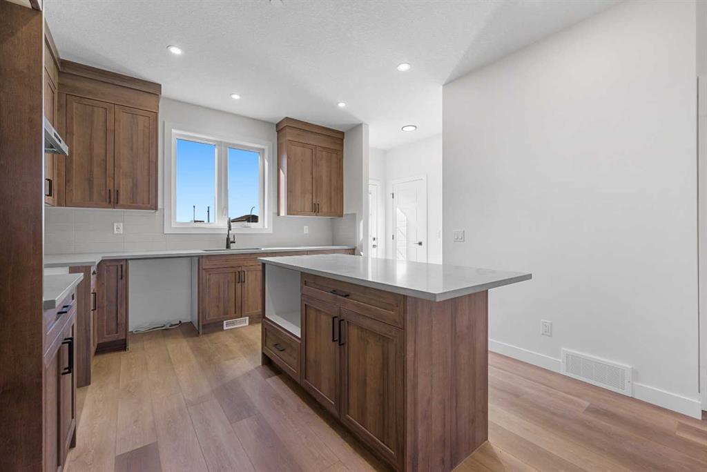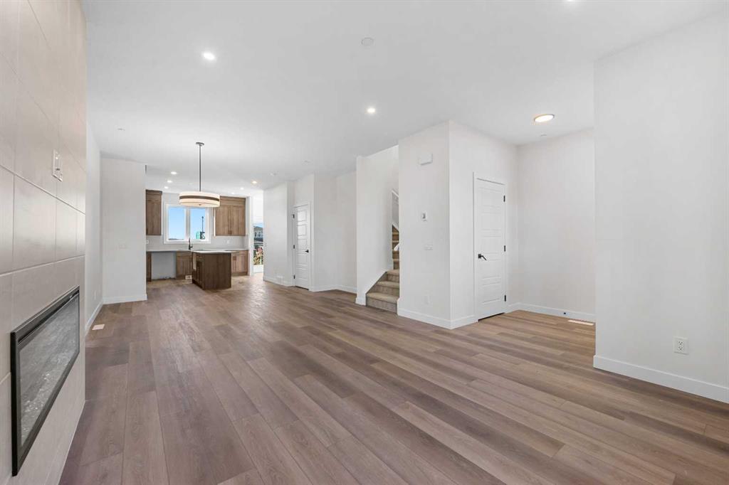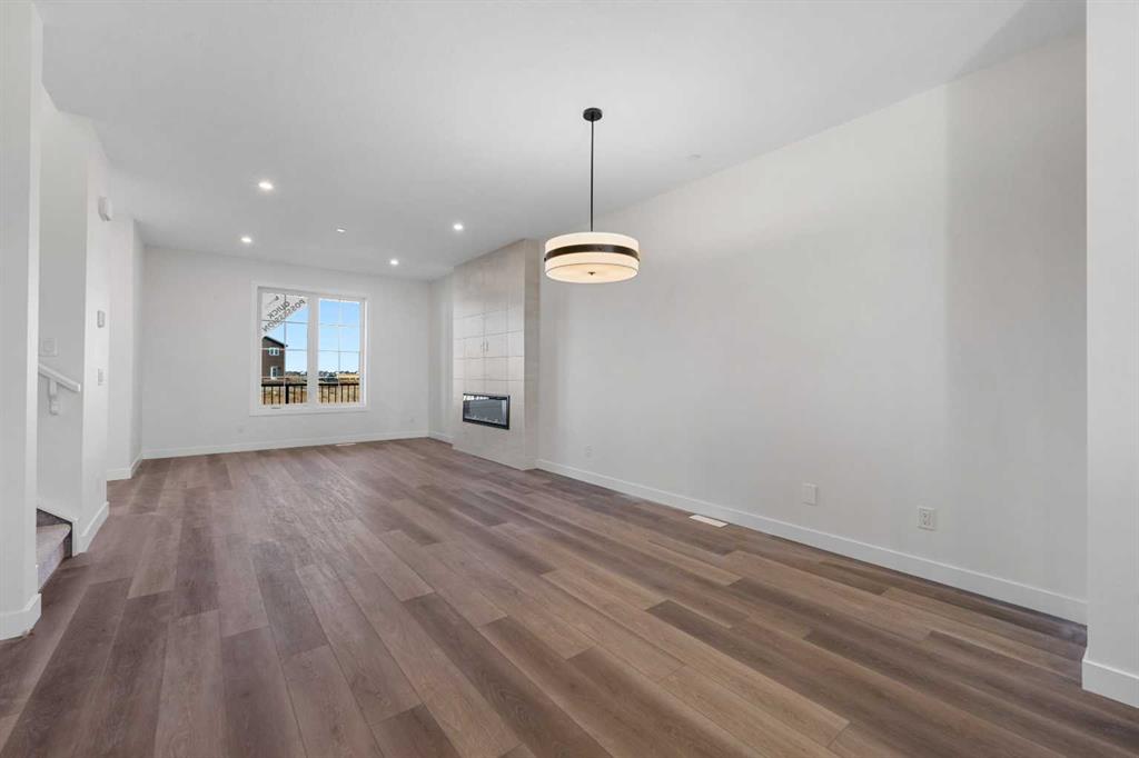 Welcome to this beautifully crafted, move-in ready 2025-built home by Broadview Homes, offering 1,677 sq ft of thoughtfully designed living space. Situated on an east-facing lot with a sunny west-facing backyard and convenient rear lane access with a gravel parking pad, this home combines style, comfort, and functionality. The main level features an open-concept floor plan with high ceilings, an elegant electric fireplace, granite countertops throughout, full-height cabinets, and a modern kitchen complete with a stainless steel gas range, hood fan, and built-in microwave. Upstairs offers 3 spacious bedrooms, 2.5 bathrooms, and a convenient upper-floor laundry room. Enjoy additional upgrades including a 200 AMP electrical panel, precast front verandah, and 9' basement ceilings. The basement is legal suite-ready, with a separate side entrance, second furnace and HRV system, kitchen rough-in, and laundry rough-in – all subject to City of Calgary approval. This is a fantastic opportunity to own a brand-new, luxury home with incredible future income potential in a growing community.