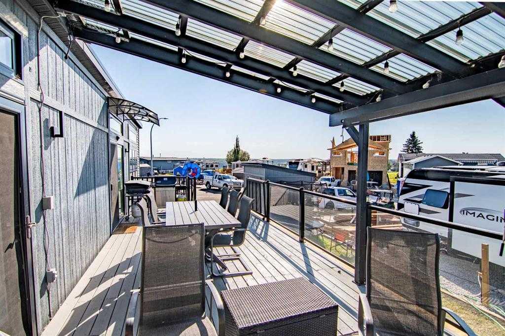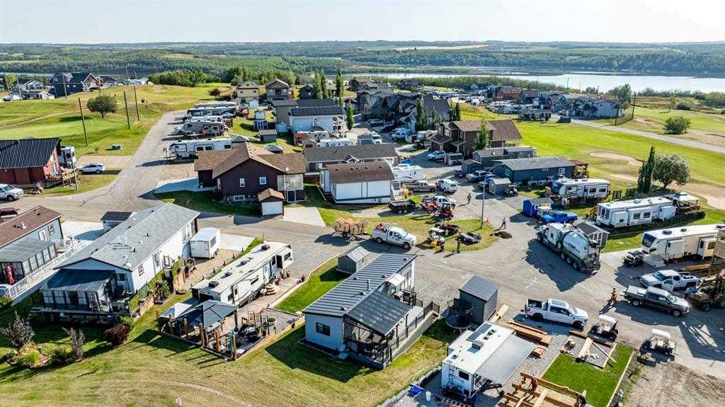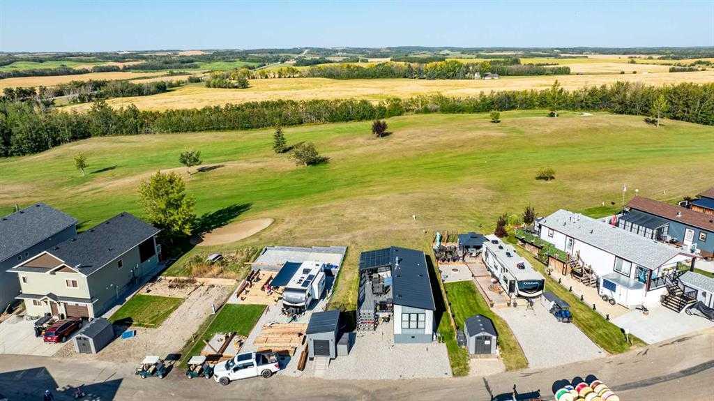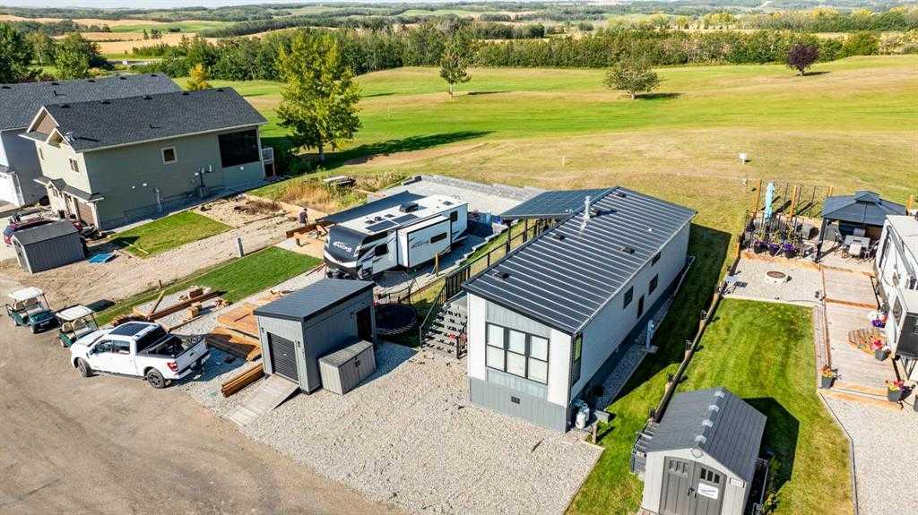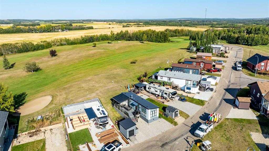 Contemporary Park Model with Stunning Golf Course & Lake Views – Turnkey & 4-Season Ready! Discover the perfect blend of contemporary style and comfort in this stunning 2-bedroom, 1-bathroom park model in Pine Lake. Built in 2015, this beautifully maintained home feels like new and is designed for year-round living. Key Features: • Prime Location: Enjoy golf course views to the west and a serene lake view to the east. • Stylish Outdoor Living: Spacious deck, partially covered with a pergola, plus a shed for extra storage. • Contemporary Interior: Bright open-concept floor plan with a cool, modern aesthetic. • Fully Equipped Kitchen: Breakfast bar and a propane stove for effortless cooking. • Cozy & Warm: Features an electric fireplace to keep you comfortable in all seasons. • Master Suite: Built-in storage and a thoughtfully designed space. • 3-Piece Bathroom: Functional and stylish. • Turnkey & Move-In Ready! Don’t miss this incredible opportunity to own a 4-season getaway in a prime location. Whether you’re looking for a weekend retreat or a year-round home, this property offers comfort, style, and breathtaking views. Resort includes: an indoor heated swimming pool, hot tub, exercise/gym (open year-round!), changing rooms and bathrooms, pro shop at the clubhouse, 18 hole golf course, restaurant, lounge and patio with stunning views of the lake, driving range, playground, community gardens, sport courts, laundry facilities, event facility, snack shack, as well as fresh veggies and fruit from local farmers on Saturdays! Marina is available for rent at $1050 plus for the season: May to September. There is a crew who helps with setting up your boat lifts as well as they can stay on the beach for those who own the lots. All of this is just 35 minutes drive from Red Deer, 1.5 to Calgary and Edmonton! Enjoy the views of golf-course on summer days. Located at the quiet end of the road-perfect for relaxing after a long day of work. There is a double graveled parking spot for your vehicles to park. Condo fee includes water, sewer, garbage as well as gate and lawn maintenance except for weed control and clubhouse access. Pets are welcome with approval. All located on the pavement, all set up and ready to move in. Great community to enjoy summer in!