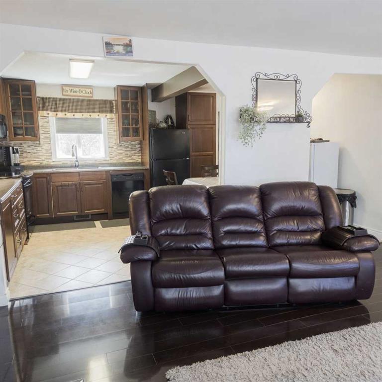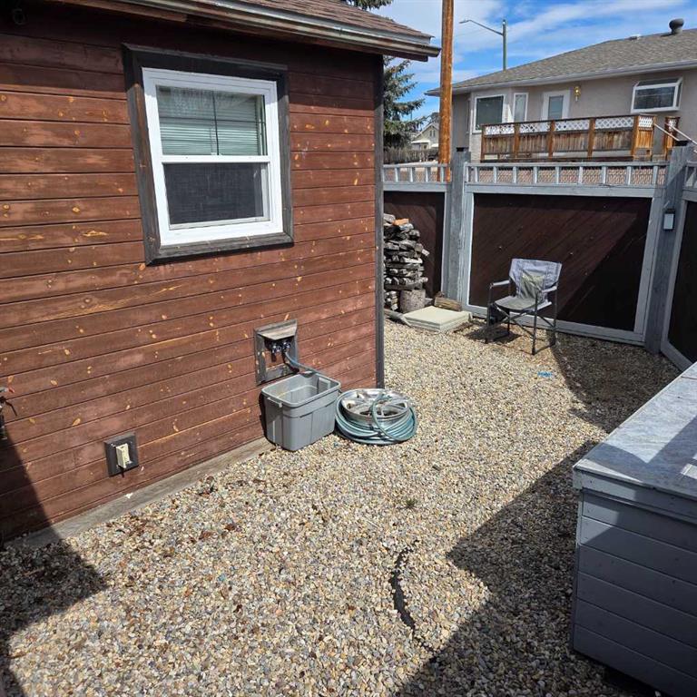 This charming 2-bedroom, 1-bathroom bungalow has been completely transformed from the studs in, offering modern comfort with cozy character throughout. Step inside to a bright and welcoming living room featuring a wood-burning fireplace and custom built-in cabinetry—perfect for relaxing evenings at home. The spacious eat-in kitchen offers an abundance of cabinetry and counter space, tiled backsplash, upgraded appliances, and a dining area with convenient access to the back porch—ideal for everyday living and entertaining. Down the hall, you’ll find two comfortable bedrooms, a laundry closet, and a beautifully updated 4-piece bathroom. The covered back porch entry includes a unique built-in catio, creating a safe and enjoyable space for your pet. The basement, accessed from the rear of the home, houses the utility area and provides excellent dry storage and workshop space. Outside, the fenced backyard is designed for low-maintenance enjoyment, featuring gravel landscaping, raised garden beds, an outdoor fireplace, and charming decorative touches—perfect for summer gatherings. A large storage shed adds convenience, while the included motorhome offers additional guest accommodation and there’s a gravel parking pad off the alley. Extensive upgrades include electrical, plumbing, insulation, drywall, flooring, furnace and ducting, hot water tank, windows, shingles (2021), and more—giving you peace of mind for years to come. Whether you’re looking to downsize, purchase your first home, or invest in a turnkey property with Airbnb potential, this home checks all the boxes. Quick possession available!