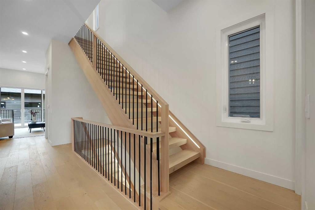 Welcome to this fully upgraded luxury residence located on a quiet street in the heart of Altadore—one of Calgary’s most sought-after inner-city communities. Showcasing a refined Scandinavian-inspired design, this move-in-ready home blends timeless architecture with high-end modern finishes throughout. Thoughtfully designed across three fully finished levels, this home offers 4 bedrooms and 4.5 bathrooms, delivering exceptional functionality for both family living and entertaining. The main floor features a bright open-concept layout anchored by a stunning chef-inspired kitchen, complete with a massive 12-foot island, premium appliances, and custom cabinetry. White oak feature walls and designer details add warmth and character, while the spacious living room with custom built-ins and a gas fireplace creates an inviting atmosphere. Expansive sliding doors lead to a private rear deck—perfect for indoor-outdoor living. Upstairs, the luxurious primary retreat offers a spa-inspired ensuite with a freestanding soaker tub, glass shower, dual vanities, and an impressive walk-in closet with custom millwork. Two additional bedrooms, including one with its own ensuite, along with a full laundry room, complete the upper level. The fully developed basement is built for lifestyle, featuring a large entertainment area, wet bar, fourth bedroom, and a dedicated office space—ideal for working from home or hosting guests. This home is finished with premium materials and exceptional craftsmanship throughout, delivering a perfect balance of modern luxury and everyday comfort. Located just minutes from River Park, Sandy Beach, top-rated schools, and some of Calgary’s best restaurants, cafés, and boutique shopping, this is a rare opportunity to own a truly standout property in Altadore.