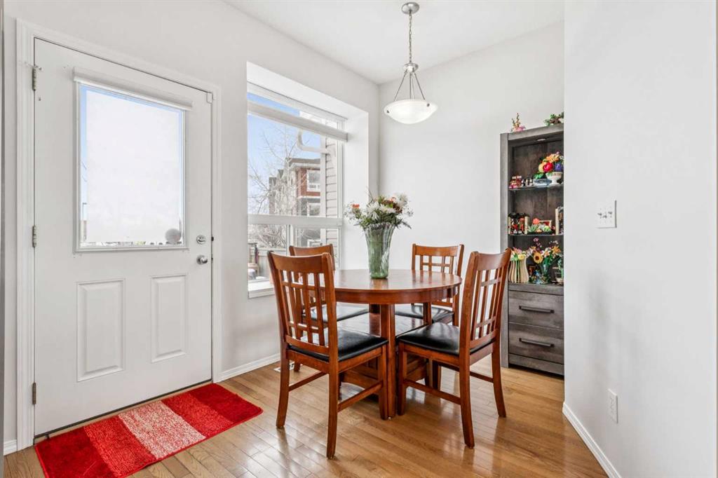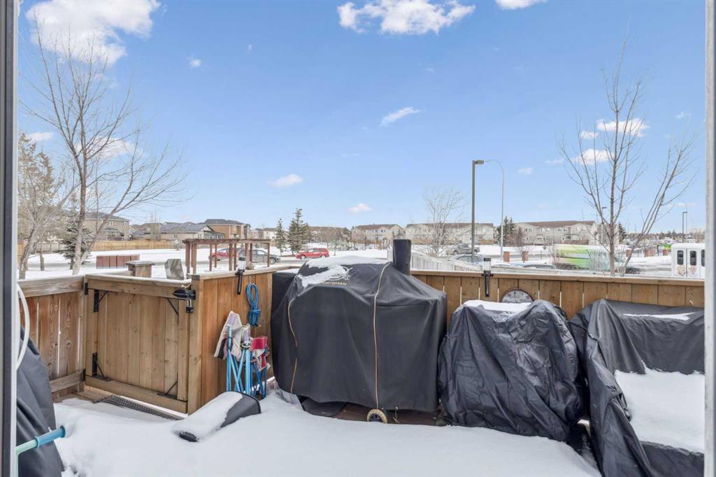Nicely upgraded 3 bedroom townhome backing on green space with playground across the street! Upgrades include hardwood floors throughout the main, beautiful quartz counters with newer S/S appliances and fresh paint on the main floor and stairwell. The main floor also has 9ft ceilings and large bay windows front and back and a full size walkin pantry in the beautiful kitchen. There is a sunny breakfast nook at the rear and a 2pce powder room off to the side. Upstairs features 3 bedrooms with the huge primary having a walkin closet and a shared 4pce ensuite. The unfinished basement is great for storage, has the laundry area, and roughed in plumbing for future development. This unit also has a nice deck off the rear with extra storage below and comes with 2 parking stalls with #56 located right out front.