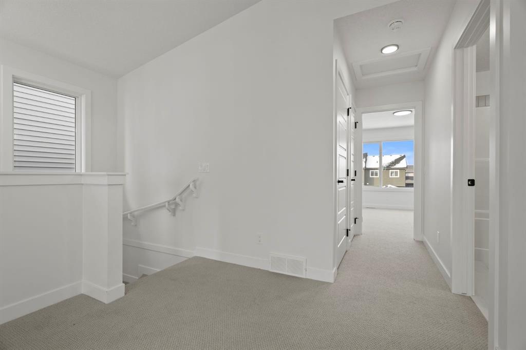 Welcome home to the Jade L — a beautifully upgraded laned home that combines modern design, thoughtful functionality, and refined finishes in the vibrant community of Lanark. Built by Sterling Homes Calgary, this residence showcases designer-curated interior selections and quality craftsmanship throughout, offering a truly move-in-ready experience. The main floor is bright and inviting, featuring wide-plank luxury vinyl flooring and an open-concept layout designed for both everyday living and entertaining. At the heart of the home, the chef-inspired kitchen impresses with quartz countertops, an oversized island with undermount sink, stainless steel appliances, sleek cabinetry with gold hardware, and a striking chimney-style hood fan. A fully equipped spice kitchen with gas range adds exceptional versatility and is a standout feature for home chefs. The living area is anchored by a contemporary electric fireplace with floor-to-ceiling tile, creating a warm and elegant focal point, while large windows flood the space with natural light. A main-floor bedroom and full bathroom provide ideal flexibility for guests, multigenerational living, or a private home office. Additional highlights include a walk-in pantry with built-in shelving, modern lighting, and clean-lined interior doors that enhance the home’s modern aesthetic. Upstairs, the thoughtfully designed layout continues with a vaulted-ceiling bonus room featuring a skylight, offering a bright and airy space perfect for family movie nights, a play area, or a quiet retreat. The primary suite is a true sanctuary, showcasing a spa-inspired 5-piece ensuite with dual sinks, a standalone soaker tub, a tiled shower, and a large window that fills the space with natural light. A spacious walk-in closet with custom wire shelving completes the retreat. Secondary bedrooms are generously sized with large windows and ample closet space, complemented by a well-appointed main bathroom finished with quartz countertops and contemporary fixtures. Convenient upper-level laundry adds everyday practicality. This home is also equipped with a full smart-home package, including a programmable thermostat, Ring video doorbell, smart front door lock, and motion-activated switches—all controlled through an Amazon Alexa touchscreen hub. With upscale finishes, a functional and flexible floor plan, and standout features rarely found at this price point, the Jade L offers modern living at its finest in one of Airdrie's newest and most exciting communities.