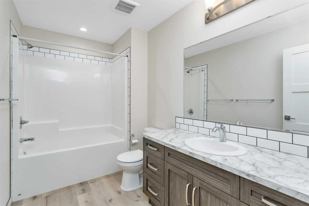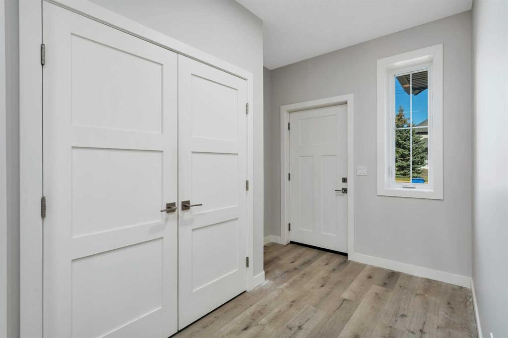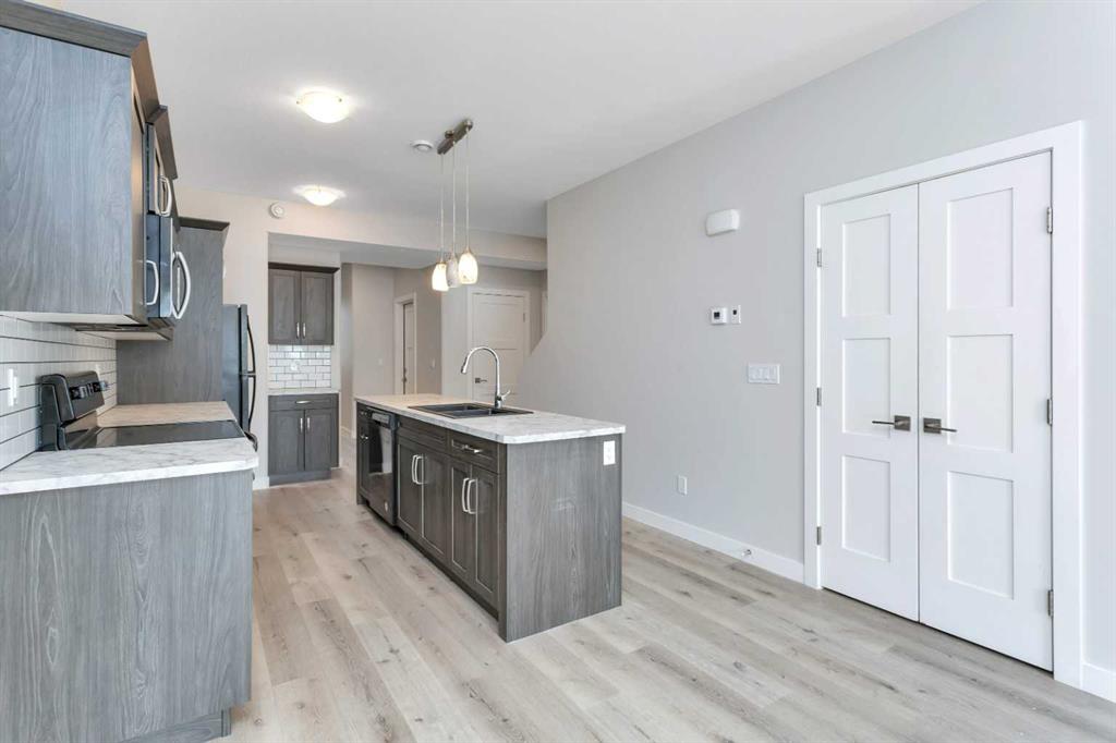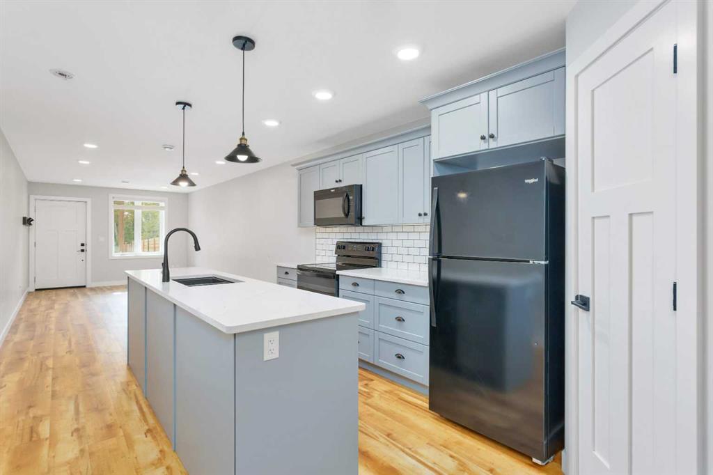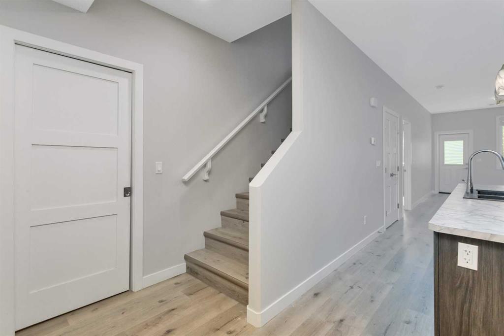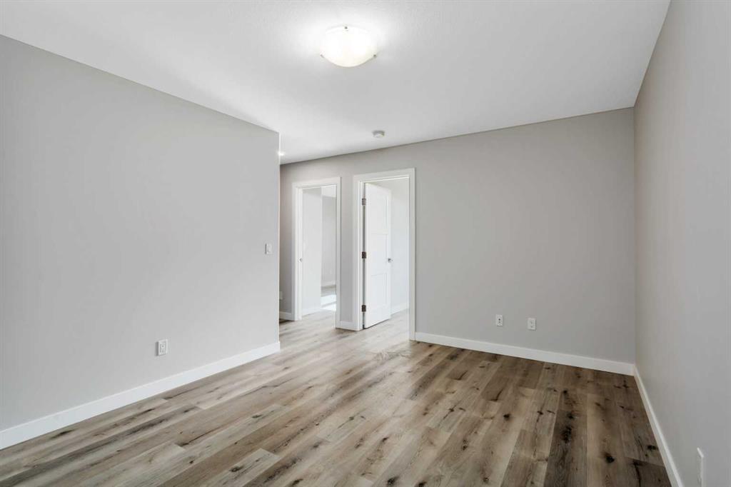 Up/Down suite with walk-out basement! Lots of opportunities here, with upstairs unit having 3 bedrooms; the primary bedroom is on the main floor & 2 large bedrooms upstairs with 4 piece bathroom and Bonus Room area! Vinyl plank flooring is throughout the entire unit, high ceilings creating nice open concept, subway tile backsplash in kitchen and large center island with storage. There is a coffee bar area , main floor laundry and hot water on demand in the utility room. The Primary has a walk-through closet to a spacious 3 piece ensuite. The outside deck is huge and captures morning & afternoon sun. Front attached single garage ensures your vehicle stays snow-free in the winter months and ICF block foundation keeps everything inside warm and toasty! Basement unit has large primary bedroom with walk-in closet and 4 piece bathroom close by. There is an office/den, corner pantry and quartz counters in the kitchen with large island and vinyl plank flooring. Ceilings are nice & high, big windows throughout and infloor heat ensures all the warmth you need. Washer & dryer are in utility room and there's a large cement patio outside to enjoy. Yard is partially fenced with 2 parking spaces out back. Balance of New Home Warranty remains for peace of mind. Great location, close to Dodds Lake, downtown amenities and all that the Town of Innisfail has to offer!