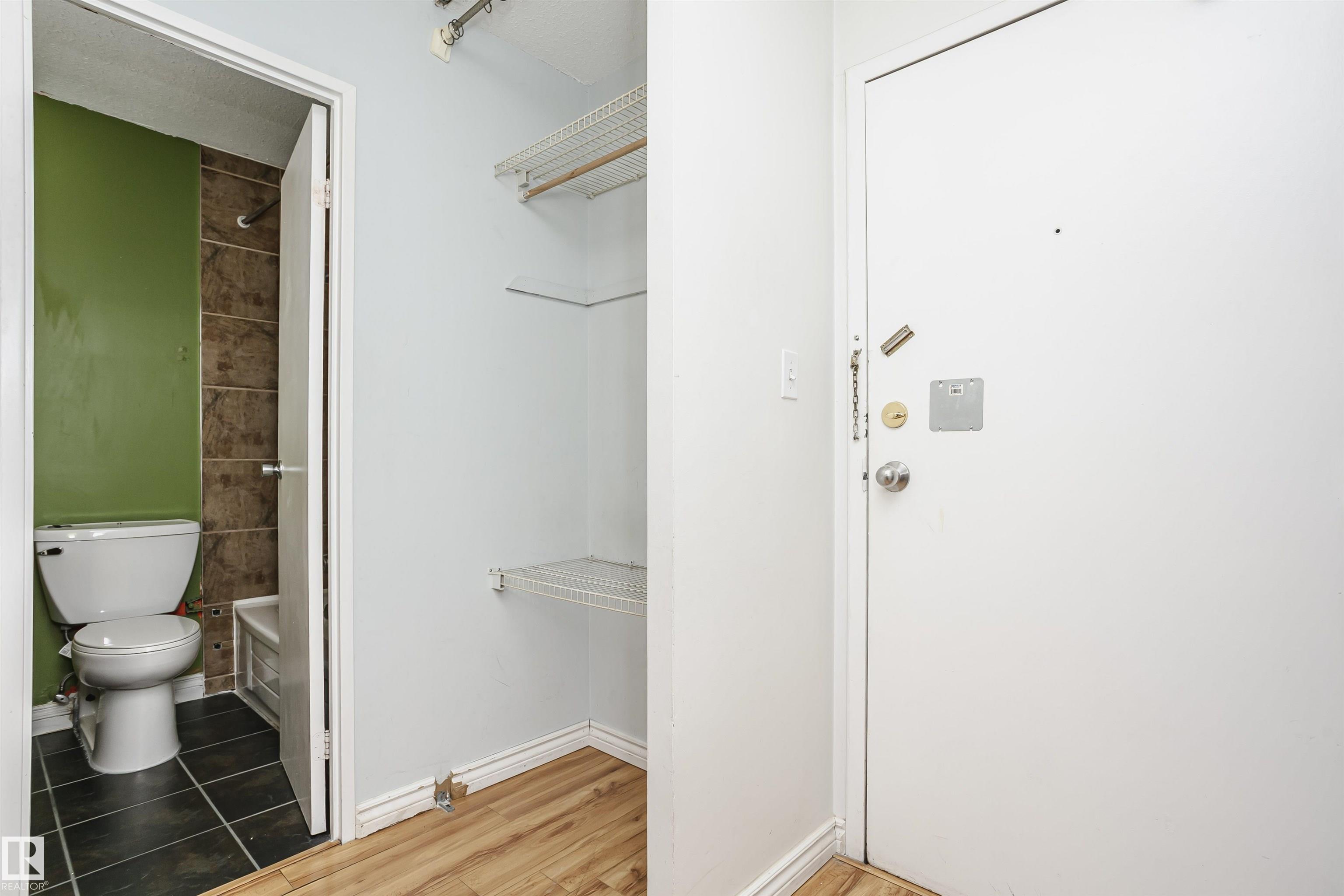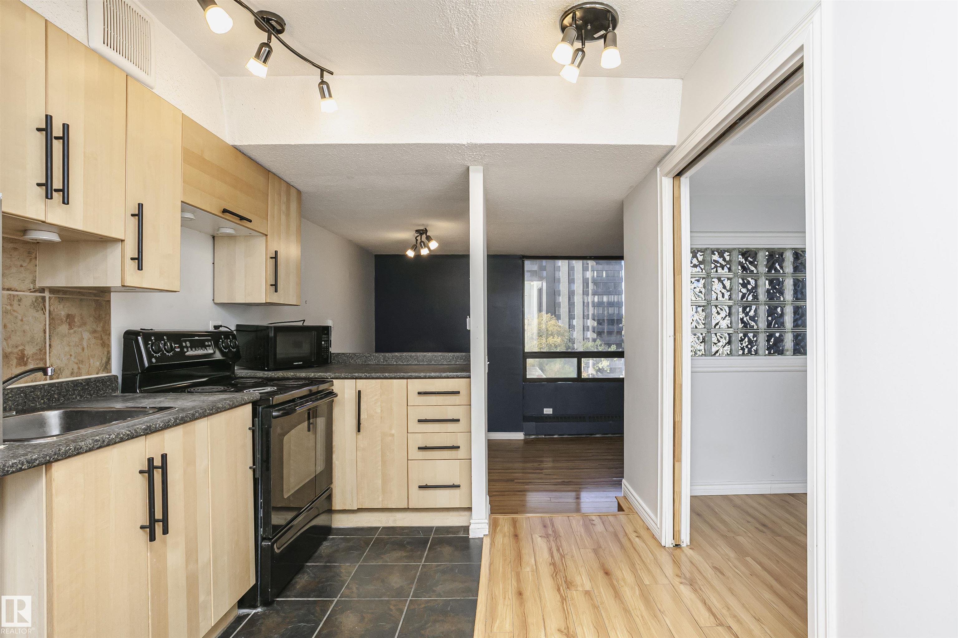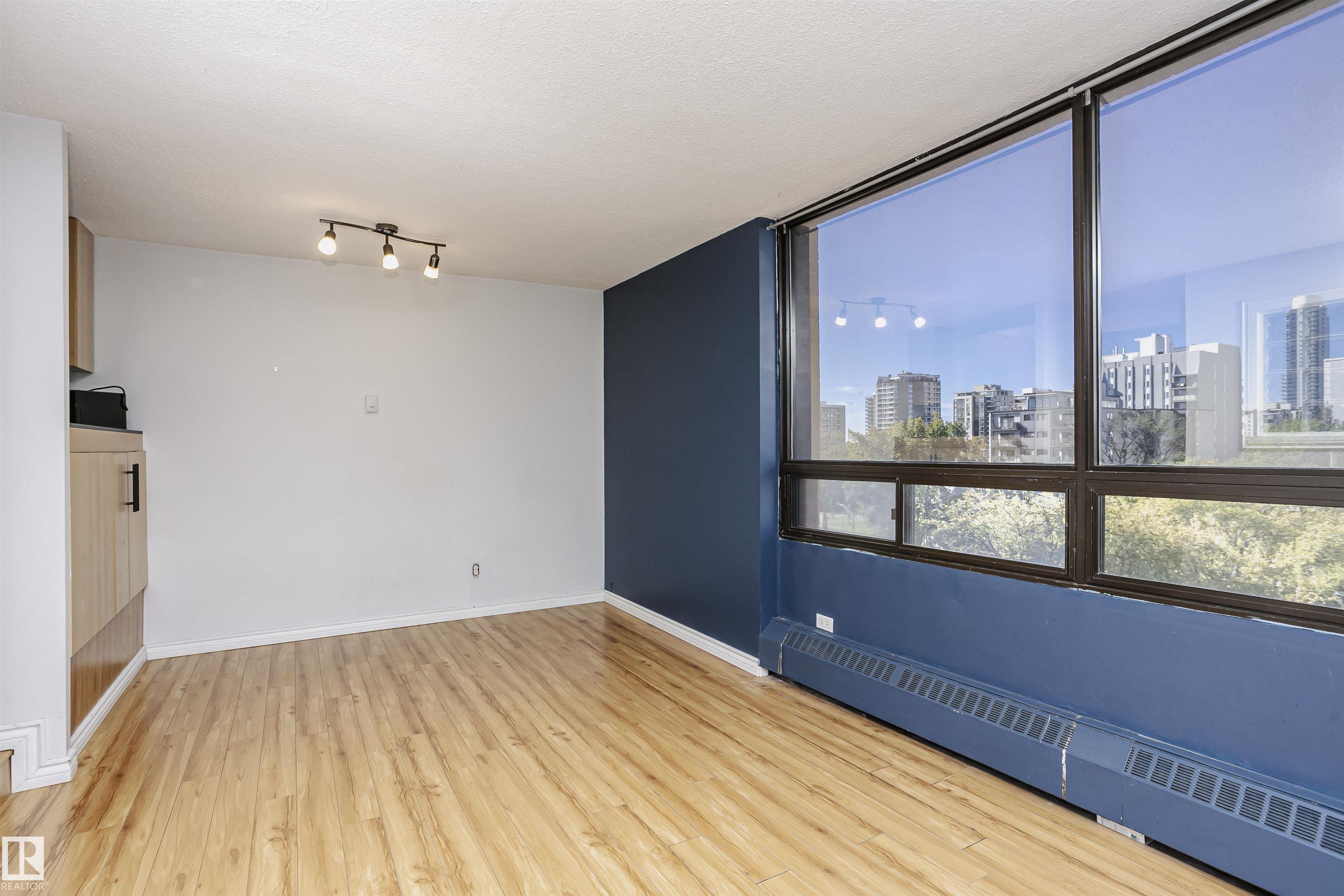 Immaculate and inviting one-bedroom unit on the 5th floor of a modern concrete condo, offering 435 sq. ft. of comfortable living space. Condo fees cover electricity, water, and heat. Each floor is equipped with its own laundry room. The building has been recently updated with new flooring, fresh paint, and modern fixtures, and features two high-speed elevators. Prime location near Jasper Ave, LRT, shops, and restaurants. The unit includes an assigned underground parking stall (P2, #122).