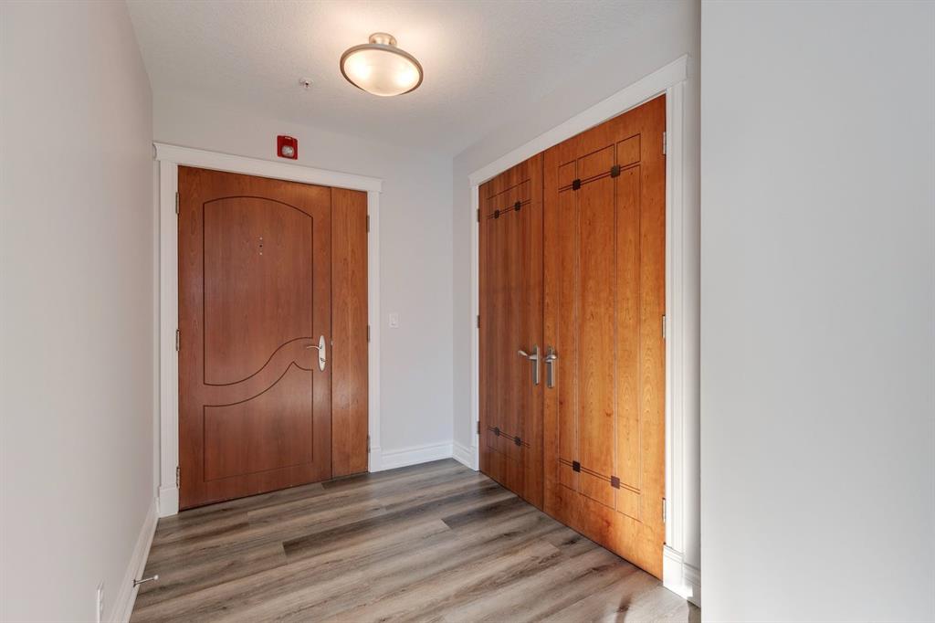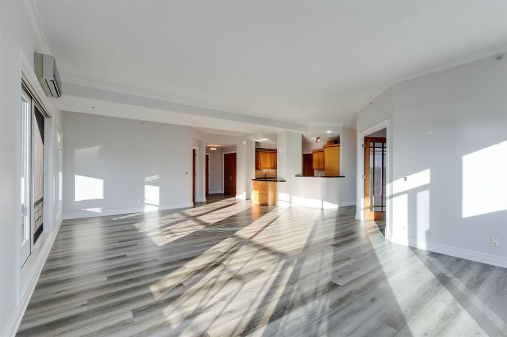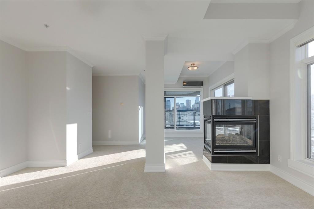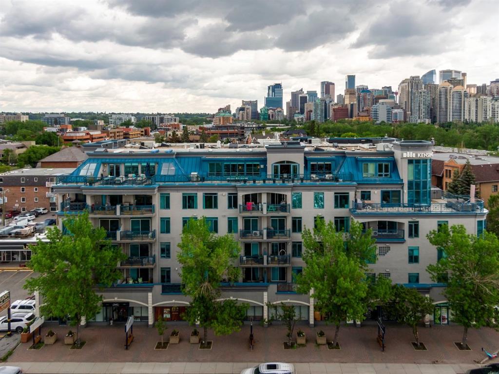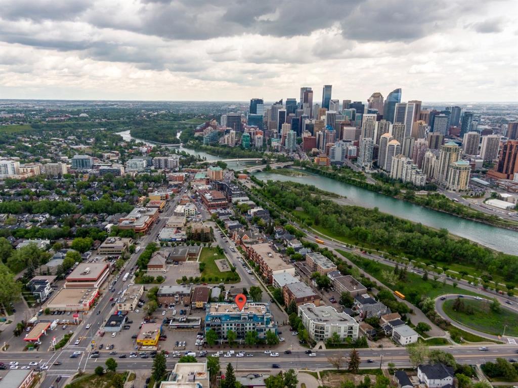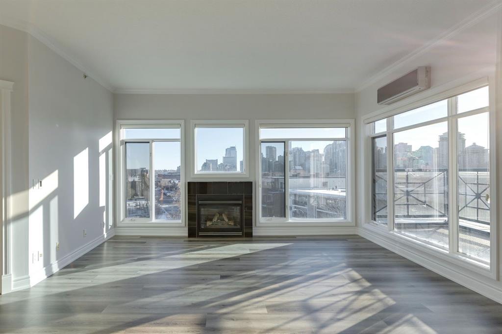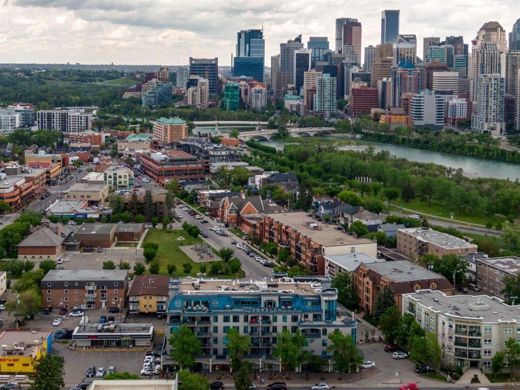This is a rare opportunity to live in luxury on the quiet east side of the desirable Kensington Mews complex with panoramic DOWNTOWN VIEWS! Make your home in one of Calgary's trendiest communities - stroll the river pathways just outside your door and enjoy some of Calgary's best restaurants and locally owned businesses right in your neighbourhood! The 5th and 6th floors of Kensington Mews were built as the executive levels in this building with fewer units per floor, solid-core doors, 10' ceilings, air conditioning and luxury kitchens - unit 506 is the only true sub-penthouse unit with 1,900 square feet of living space and a wrap-around deck. Sunlight streams in through the wall-to-wall south & east windows, creating an energizing feeling in this high end unit. With brand new flooring & paint, this unit is fresh and move-in ready. Open concept living gives opportunity for multiple furniture layouts and plenty of space to entertain - go ahead and show off! The kitchen features solid wood cabinetry, thick granite, gas cooktop, wall oven, under-cabinet lighting and fantastic storage. The living & dining areas bask in natural light and have a gas fireplace to stay cozy all winter. The primary suite is a place to indulge - literally larger than some new-build condos today (!) and featuring custom built-ins in the walk-in closet, spacious full ensuite and enough space for any size of bedroom suite. Create a reading nook or home office beside the 2nd gas fireplace and enjoy direct access onto the balcony right from your bedroom. On the opposite site of the suite, you will find the 2nd bedroom and full bath along with a flexible space that could be a beautiful home office - but remove the built-ins and you would have a rare 3rd bedroom! One thing that is truly not lacking with this home is storage - not only is there an oversized laundry room/pantry with 2nd fridge, there is a back storage room with freezer as well as TWO STORAGE LOCKERS downstairs including one private room immediately adjacent to your TWO TITLED PARKING STALLS. This quiet CONCRETE building also offers visitor parking, secure bike storage room and optional gym access ($240/year). Pet-friendly with no weight restriction! The location of this building cannot be overstated with a 96 walk score and 99 bike score! Kensington offers groceries, cafes, restaurants, local movie theatre, boutique shopping as well as beautiful tree-lined residential streets and a quiet feel. Getting into downtown or west to the mountains is a breeze from this spot.