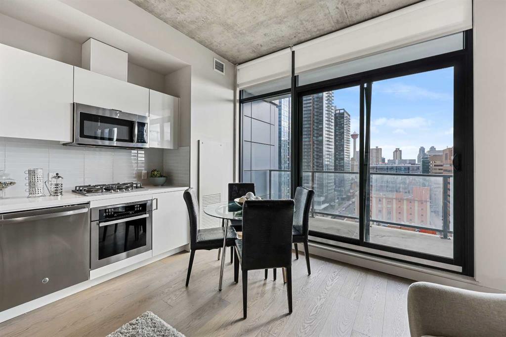 Experience elevated urban living at 6th and Tenth, perfectly positioned in the heart of Calgary’s vibrant Beltline district. This striking high-rise blends sleek contemporary architecture with an unbeatable inner-city location—offering an exceptional opportunity for savvy investors and lifestyle-driven buyers alike. This intelligently designed 415 sq. ft. one-bedroom, one-bathroom residence proves that great things come in perfectly optimized packages. The east-facing orientation frames stunning views of the iconic Calgary Tower and the glittering downtown skyline. Floor-to-ceiling windows flood the space with natural light, creating an airy, inviting ambiance from morning to night. Inside, a bold modern-industrial aesthetic sets the tone. Exposed 9-foot concrete ceilings and feature walls deliver character and edge, while the open-concept layout maximizes every square foot for both comfort and functionality. Central air conditioning ensures effortless year-round comfort—an added luxury in urban condo living. Residents enjoy access to an impressive collection of premium amenities, including a fully equipped fitness centre, a stunning outdoor terrace with a swimming pool, and a stylish entertainment lounge with shared kitchen—ideal for hosting friends or unwinding above the city buzz. Even more compelling: short-term rentals such as Airbnb and Vrbo are permitted, offering flexibility and attractive income potential for investors or part-time residents. Whether you’re seeking a chic urban retreat, a turnkey investment, or a foothold in one of Calgary’s most dynamic neighborhoods, this residence delivers exceptional value and undeniable appeal. Opportunities like this don’t last. Secure your place in Calgary’s thriving urban core today.