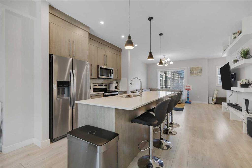 Welcome to this beautifully maintained and move-in-ready townhouse offering a perfect blend of space, functionality, and convenience. From the moment you enter, you’ll appreciate the high ceilings and abundance of natural light, creating an open and airy atmosphere throughout the home. The open-concept main living area connects the living room and kitchen, making it ideal for both everyday living and entertaining. The kitchen offers ample cabinets and counter space, while the bright living area provides a comfortable setting for relaxing or hosting guests. This home features three generously sized bedrooms plus a dedicated office/den, offering flexible space for working from home, a study area, or additional storage. The thoughtful layout ensures privacy and comfort for families, professionals, or downsizers alike. Additional highlights include: Attached double car garage, providing secure parking and extra storage; Clean and well-kept interiors; Low condo fees, keeping monthly costs affordable; and Bright lighting throughout, enhancing the modern feel of the home The location is truly exceptional—close to a shopping complex, playgrounds, and the airport, making daily errands and travel incredibly convenient. With easy access to Stoney Trail and Deerfoot Trail, commuting anywhere in the city is quick and efficient. Whether you’re a first-time buyer, growing family, or investor, this townhouse delivers space, comfort, and unbeatable accessibility in one attractive package.