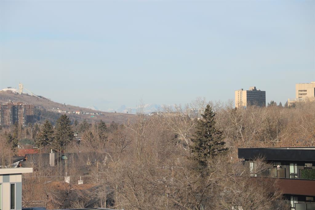 Enjoy MOUNTAIN VIEWS from the living room or balcony at #508 Frontier! The Gorgeous Sunset Views from this West Facing 2 Bedroom 1 Bathroom, featuring Over 660 Sq Ft of Total Space. With Polished Finishes, Modern Accents, AC & Spacious Bedrooms, this Unit gives you the option for a home office, guest suite, or shared living. A Prime Location, with Excellent Nearby Schools, Grocery within Steps, Crave Cupcakes, and Many More Retailers. Walk or Bike Downtown, and enjoy Bow River pathways, top shops and restaurants. With a chef-inspired kitchen, sleek quartz countertops, stainless steel appliances, and high-end fixtures throughout, experience luxury living in the Heart of Kensington. Fantastic Building Amenities, Including a Dog Wash Station, bike storage, full fitness centre, dedicated co-work space, and outdoor Courtyard with plenty of seating and recreational area. The exceptional BALCONY and VIEWS, include a gas connection for BBQing and entertaining. The unit also includes a titled underground parking stall along with a secure storage area. Don't Miss this Chance for a Brand New Premium-Layout Unit in a Sought-After Community!