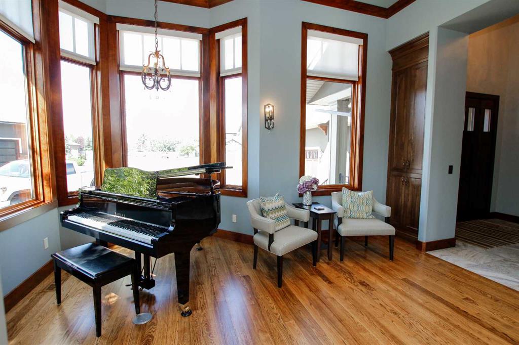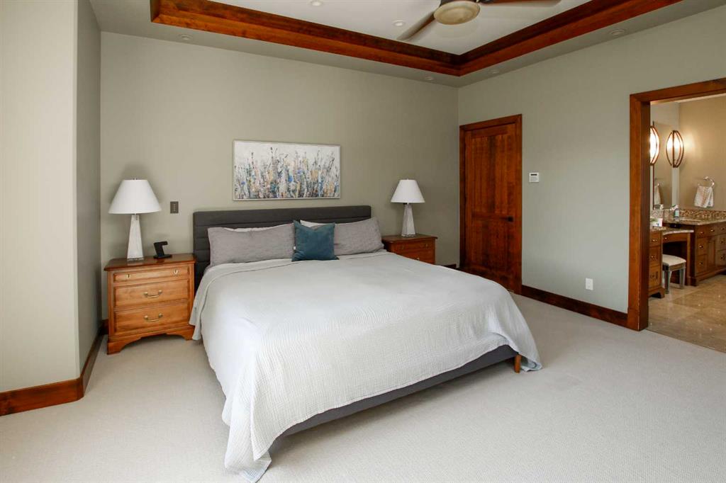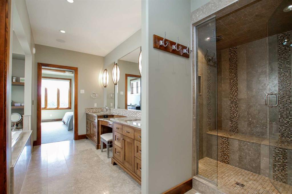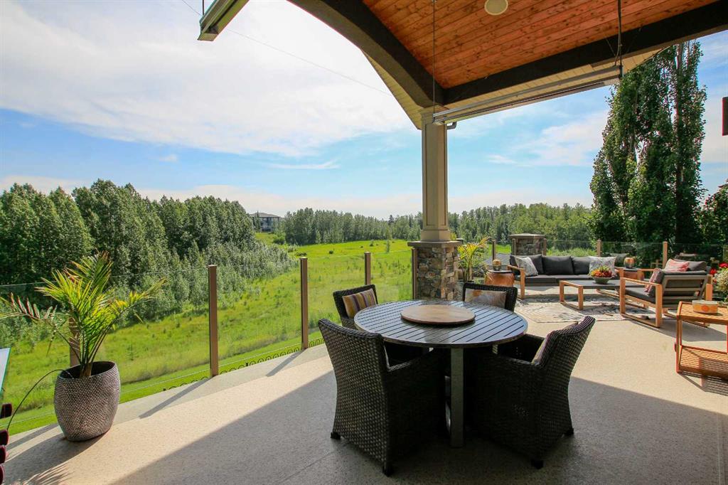 FULLY DEVELOPED EXECUTIVE STYLE 2-STOREY LOCATED IN ONE OF RED DEER'S MOST PRESTIGIOUS LOCATIONS ~ BACKING ONTO AN ENVIRONMENTAL RESERVE & PIPER CREEK ~ EXPANSIVE PIE-SHAPED LOT, BEAUTIFULLY DESIGNED WITH LOW MAINTENANCE LANDSCAPING ~ LOADED WITH HIGH END FEATURES & FINISHINGS ~ This luxury home was custom built by Bowood Homes, , showcasing exceptional craftsmanship and attention to every detail ~ Covered front entry leads to a grand foyer with high ceilings that open to the upper level and accented with a chandelier ~ Great room with a sitting area opens to the dining room with a gas fireplace accented with tile and stone ~ Stylish wet bar features rich wood cabinetry, stone countertops and tile backsplash ~ The living room is flooded with natural light from the abundance of large windows and has garden door access to the partially covered deck ~ Gourmet kitchen features rich wood cabinetry with crown moulding, large drawers, lighted display cabinets, a full tile backsplash, stone countertops, oversized island with a butcher block section and a second sink, a premium Wolf gas range & a commercial style refrigerator ~Walk in pantry with built in shelving ~ The primary bedroom can easily accommodate a king size bed with room for a sitting area, spa like ensuite has dual sinks and a built in makeup counter, air tub, separate water closet & a steam shower ~ The walk in closet has built in shelving, dressers, & a bench with access to the laundry room w/built in cabinets, a folding counter, sink and sewing desk ~ Mudroom has more built in cabinets, large closets, & access to the triple attached garage (heated & fully finished) ~ Open staircase leads to the library with built in bookcases & an adjoining wet bar with built in cabinets, stone countertops ~ 2nd bedroom has a walk in closet and is located next to a 4 piece bath ~ Bonus room has vaulted ceilings, rows of recessed lighting, built in cabinets and a walk in storage closet ~ The bright and spacious walkout level is highlighted by a large recreation room with a wet bar featuring rich cabinetry, stone counters & a wine cellar, that opens to a sitting area with stone and wood details ~ Garden doors leading to the covered patio ~ Media room has built in cabinets and tiered seating ~ Home gym has floor to ceiling mirrors ~ 3 piece bath ~ 2 basement bedrooms have walk in closets, one has a 3 piece ensuite ~ 2nd laundry room next to bedrooms ~ The backyard oasis was professionally landscaped, has an irrigation system, putting green, gazebo and fire pit, tons of mature trees, shrubs and perennials, large storage shed, and unobstructed views ~ Convenient location close to all amenities with tons of great shopping and dining within walking distance in a one of a kind location ~ Pride of ownership is evident!