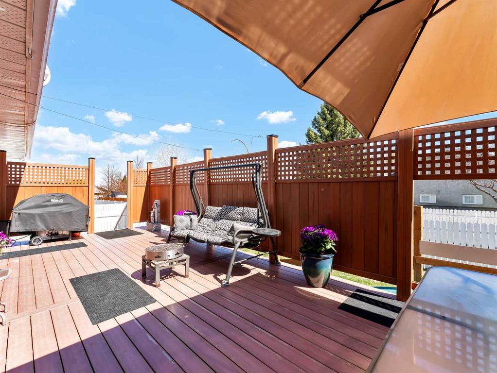 Welcome to this one-owner, custom-built home in the heart of Southridge—perfectly situated in SE Southridge and just a short walk to parks, schools, playgrounds, and scenic walking paths. This is a location that truly supports everyday living. This home offers 4 bedrooms (3 up, 1 down) and a layout that stands out from the rest. The main floor features a sunken living room with impressive ceiling height and beautiful natural light that fills the space and flows effortlessly into the rest of the home. Just a few steps up, you’ll find the open-concept kitchen and dining area—designed for both function and connection. The kitchen showcases oak cabinetry with updated modern hardware, a smart, usable layout, and a granite sink. The dining area is spacious and positioned at the back of the home, with direct access to your private upper deck—ideal for hosting or simply unwinding. Down the hall, you’ll find a full 4-piece bathroom, two well-sized secondary bedrooms, and a comfortable primary retreat complete with a walk-in closet and its own 3-piece ensuite. The fully developed basement adds even more versatility, featuring newly installed vinyl plank flooring, a large family room with rough-in for a future wet bar, and a fourth bedroom. One of the standout features down here is the spa-inspired relaxation space with a massive jetted tub—your own private escape at the end of the day. There’s also a 2-piece bathroom, dedicated laundry room, utility space with extra storage, and a unique bonus area tucked beneath the sunken living room—perfect as a kids’ playroom, extra storage, or flex space to suit your needs. Outside, the fully fenced yard is set up for both privacy and enjoyment. The upper deck features low-maintenance composite decking, a gas line for your BBQ (included—bonus), and access down to the landscaped yard with underground sprinklers. The front of the home offers great curb appeal, with a double attached garage and the added benefit of a corner lot. A solid, well-cared-for home in a highly desirable neighborhood—this one is easy to love. Furnace and HWT are two years old, vinyl flooring in the basement is a year and half.