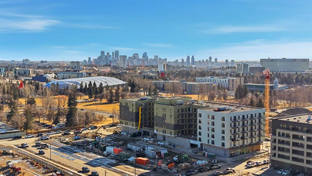 Built by Homes by Avi and Built-Green Registered, this beautifully designed A1.1 floor plan at Autumn in University District offers modern, efficient living with 1 bedroom, 1 bathroom, and a spacious private balcony. Thoughtfully crafted for comfort and functionality, the open layout features a bright kitchen and dining area that flows seamlessly into the living space, creating an inviting environment for both everyday living and entertaining. The well appointed bedroom with walk-in closet provides a peaceful retreat, complemented by a contemporary full bathroom and in suite laundry. Autumn’s architecture is defined by three distinct building profiles, giving the development a unique and contemporary presence. Residents enjoy an impressive collection of amenities, including a top floor owner’s terrace with BBQs, fire tables, and a community garden; a fully equipped fitness centre; a co work and entertainment lounge; and secure storage units conveniently located on every residential floor. Additional conveniences include a heated underground parkade, outdoor visitor parking, a secure main floor bicycle storage room with direct laneway access, and a dedicated bike/pet washing station. Located in the heart of University District, Autumn places you steps from Central Commons Park, the vibrant Retail Main Street, The University of Calgary and close to The Alberta Children’s Hospital, Foothills Hospital, Market Mall—offering unmatched walkability and year round lifestyle appeal. Fall in love with the A7 at Autumn, where smart design meets exceptional urban living.