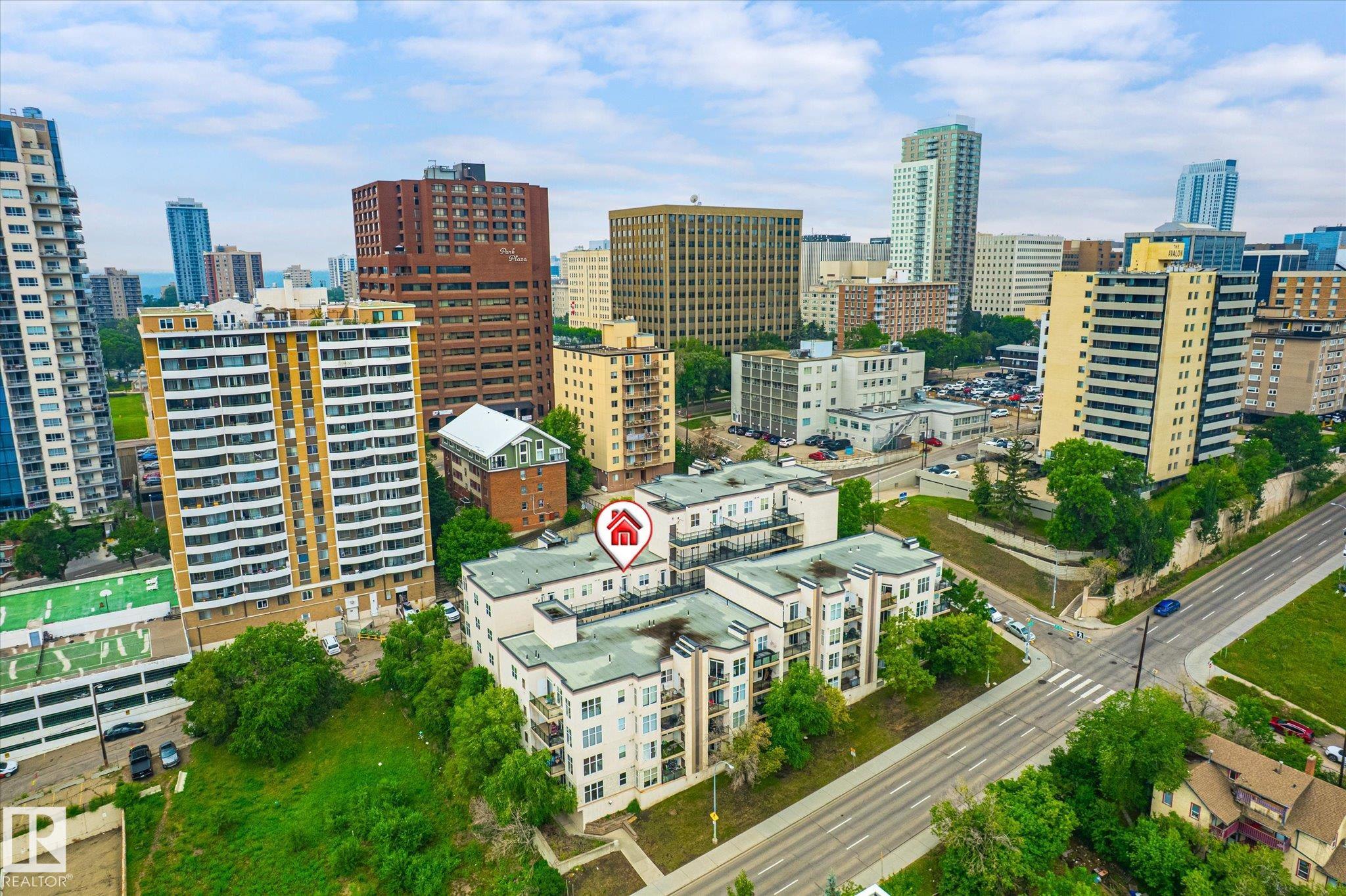Top floor river valley unit! This contemporary condo is in a fantastic location, steps away from the Legislature, the river valley and the ball park! As you walk to the suite's front door you will notice that your front entry and 2nd bedroom overlooks the river valley. Inside 9ft ceilings with floor to ceiling windows allows the sunlight in to bounce off of your hardwood flooring. A maple island kitchen with eating bar and tons of counters and cabinets is perfect for the chef in the family and it is also nicely equipped with stainless steel appliances. Patio doors lead to a balcony that faces west, A/C will keep you cool. The large master bedroom has a walk in closet and a full ensuite with tile tub surround and tile flooring. Main bathroom with tile flooring and shower, stackable washer and dryer and secure underground parking stall round out the features. There is ample visitor parking in the alley on the west side of the building.