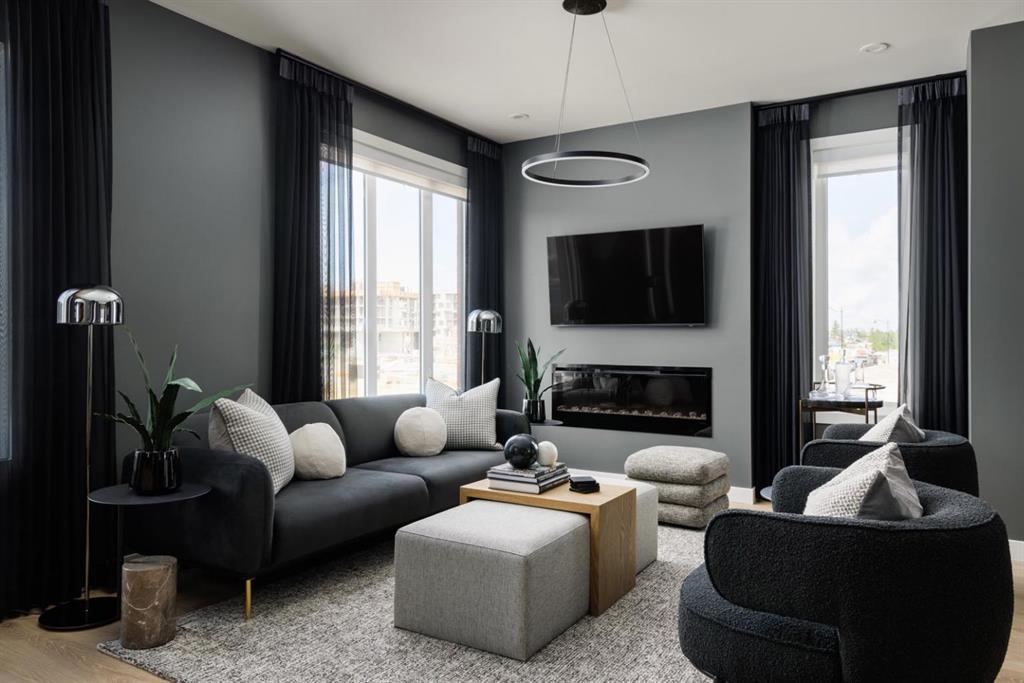 Experience the perfect blend of sophistication, style, and convenience at District Towns in Calgary’s vibrant West District. This beautifully designed 2-bedroom, 2.5-bathroom townhome combines modern architecture with timeless interiors, all enhanced by an expansive rooftop terrace overlooking Radio Park—a rare feature that truly sets this home apart. Thoughtfully crafted across three levels, this residence is ideal for those seeking a refined urban lifestyle. The main floor features a versatile flex room, perfect for a home office, fitness space, or creative studio, along with direct access to the attached double heated garage for ultimate convenience. The main living level is bright and inviting, with soaring ceilings, wide-plank flooring, and an open-concept layout designed for modern living. The chef-inspired kitchen is a showpiece, featuring full-height cabinetry with soft-close doors, a gas range, integrated refrigerator, built-in microwave, and a spacious pantry. A large eat-up quartz island anchors the space—perfect for casual dining, hosting friends, or enjoying a quiet morning coffee. Upstairs, you’ll find two generously sized bedrooms, each with its own private ensuite for maximum comfort and privacy. The primary suite is a true retreat, featuring a walk-in closet and a stunning 5-piece spa ensuite complete with a freestanding soaker tub, tiled shower, dual vanities, and elegant designer finishes. The second bedroom offers its own stylish ensuite, making it ideal for guests or family. A conveniently located upper-floor laundry adds to the home’s thoughtful design. Crowning this residence is the spectacular rooftop terrace, offering sweeping views of Radio Park and the West District skyline. This private outdoor space is perfect for summer barbecues, evening cocktails, or simply unwinding under the stars. Situated steps away from parks, pathways, boutique shops, and premium dining, District Towns deliver a connected, walkable lifestyle in one of Calgary’s most exciting new communities. With TRUMAN’s renowned craftsmanship and attention to detail, this home is more than a place to live—it’s where you can truly Live Better