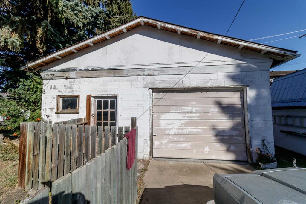 Welcome to 5120 47 street. This home has 2 bedrooms and 1 4 piece bathroom on the main floor . The Master Bedroom is quite spacious. There is currently a washer dryer in the kitchen. This can be moved downstairs where there are other hooks ups in the basement. The basement was previously rented out and was in need of renovations. It is currently been mostly removed. There is still plumbing , electrical with stove plug and framing from previous 1 bedroom, 1 3peice bathroom, kitchen and living room. The furnace is a Coleman mid efficient furnace . Shingles were replaced around 7 years ago on the home. Vinyl Windows on main floor are stamped 1997. There is a separate entrance area on the side of the home with walking path and rear gate access to the yard. There is a fenced yard and a long driveway up the side of the home to a rear detached 24x 26 ft garage with 9ft ceilings. The Garage is constructed with cinder block walls on concrete pad and pony walls and has doors on the front and back of the garage and has power . This would be a great space for someone who wants to put in a hoist and work on a project car. Available now for a quick possession this home has potential for a first time buyer looking to renovate and / or a possible rental income in the basement. Zoned R3 for multifamily use with the Town of Innisfail. Located across the street from Innisfail Public High School . 1996 RPR is attached with RMS and secondary suite information.