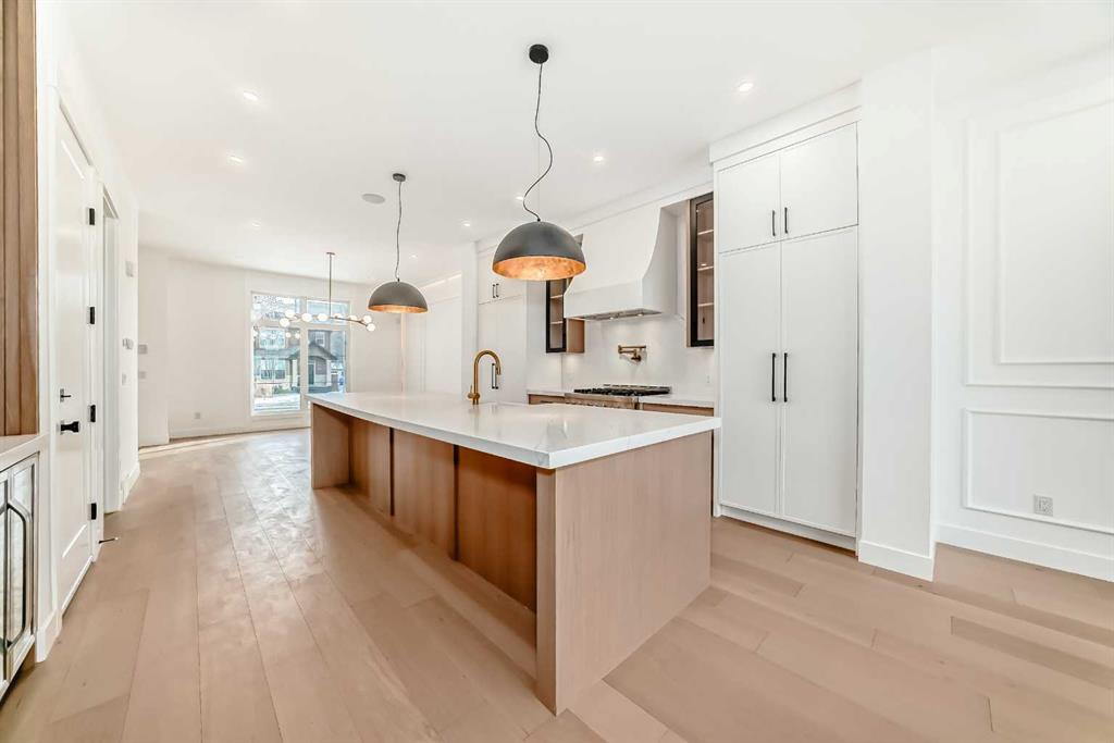 Here’s a polished, refined rewording that keeps the luxury tone while improving flow and clarity: --- Located in the highly sought-after inner-city community of Parkdale, this exceptional custom-built home offers a rare opportunity to own a truly remarkable residence. This brand-new, semi-detached two-storey home is impeccably finished and thoughtfully designed, featuring upgraded engineered hardwood and vinyl plank flooring, a designer kitchen with premium JennAir appliances, elegant quartz countertops throughout, and a total of five bedrooms and 3.5 bathrooms—including a fully legal basement suite with a private entrance. With over 2,600 sq. ft. of beautifully curated living space, every detail has been carefully considered to deliver elevated modern living. The open-concept main floor is highlighted by soaring 10-foot ceilings and expansive windows that flood the space with natural light. A bright dining area with a striking feature wall and accent lighting flows seamlessly into the formal living room, complete with a sleek contemporary fireplace and large picture windows overlooking the backyard. The show-stopping chef’s kitchen impresses with two-tone cabinetry, soft-close drawers and doors, an oversized island with farmhouse sink, built-in desk with bar fridge, and a full JennAir appliance package including a gas range with convection oven and refrigerator/freezer. Upstairs, you’ll find three generously sized bedrooms and two full bathrooms, anchored by the luxurious owner’s retreat featuring vaulted ceilings, expansive windows, a custom walk-in closet with built-ins, and a spa-inspired ensuite with heated tile floors, freestanding soaker tub, quartz-topped dual vanities, and a glass-enclosed shower with full tile surround. Two additional bedrooms, a full bathroom with quartz counters, and a dedicated laundry room with built-in cabinetry and sink complete the upper level. The fully finished legal basement suite offers excellent flexibility and income potential, showcasing vinyl plank flooring, a spacious recreation room, an eat-in kitchen with Samsung stainless steel appliances, two bright bedrooms, a full bathroom, and laundry hookups. Additional highlights include a main-floor mudroom with built-in lockers and cabinetry, built-in ceiling speakers on all three levels, upgraded lighting, a custom hidden white oak closet in the foyer, a fenced backyard with aggregate patio and gas BBQ line, and a detached double garage with 220V wiring. The home is also roughed-in for central air, central vacuum, security, and radon mitigation. Ideally located just steps from the Parkdale Community Centre and Gardens, and within walking distance to the Bow River pathway system, Foothills Medical Centre, and schools, this home is also minutes from the University of Calgary, major shopping destinations, popular parks, transit, and downtown. An exceptional property offering refined style, comfort, and unbeatable convenience.