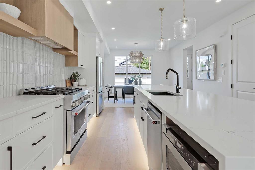 Step into a home where TIMELESS DESIGN meets MODERN FUNCTIONALITY, all wrapped up in a striking architectural exterior. Thoughtfully designed to complement both everyday life and elegant entertaining, this BRAND-NEW 5-bed SEMI-DETACHED home in beautiful MOUNT PLEASANT features high-end finishes, soaring windows, a flowing open floorplan to suit your lifestyle, plus a fully finished LEGAL 2-BED LOWER SUITE (approved by the city). From the moment you walk through the charming front entry you're greeted with a sense of understated luxury. The foyer is bright and inviting w/ a built-in bench, leading into a sunlit front living room that features a stunning inset gas fireplace with full-height tile surround with convenient built-in millwork on either side. Moving into the heart of the home, the stunning chef’s kitchen is a showstopper featuring custom ceiling-height cabinetry, quartz countertops, an oversized island, a high-end appliance package, plus designer lighting to bring the whole space together. The open-concept design keeps the conversation flowing as you gather in the dining room with elegant moulding, overlooking the private backyard through large sliding windows – perfect for summer dining! Tucked behind the kitchen, the mudroom offers functional storage for coats, boots, and backpacks, keeping everyday clutter out of sight, while the stylish powder room rounds out the main level. Upstairs, a cozy bonus room with built-in media centre greets you before heading to the primary suite. Wake up to natural light streaming in through large windows across the tall ceiling, then start your day in the beautifully designed 5-pc ensuite with a spa-like shower, dual vanity, and a freestanding soaker tub that practically begs for a relaxing evening soak. The walk-in closet is fully built out with custom shelving and storage solutions. Down the hall, two spacious bedrooms share a chic bathroom with a fully tiled tub/shower combo, while the laundry room – with extra storage and a sink – makes everyday chores a breeze. The lower level is a legal 2-bed suite with endless possibilities – rent it out for extra income, use it as a mother-in-law suite, or keep it as additional living space for your family! With a private entrance, full kitchen, spacious living area, modern 4-pc bath, in-suite laundry, and stylish finishes that match the rest of the home, it’s a functional and flexible extension of the house. Set in the heart of MOUNT PLEASANT, this home is just minutes from Confederation Park, where walking paths, playgrounds, and green space offer an escape from the city without leaving your neighbourhood. Quick access to 16th Ave and 4th Street puts downtown, Kensington, and major routes within easy reach. Families will love the proximity to top-rated schools, while coffee shops, local restaurants, and weekend markets add to the charm of this vibrant inner-city community.