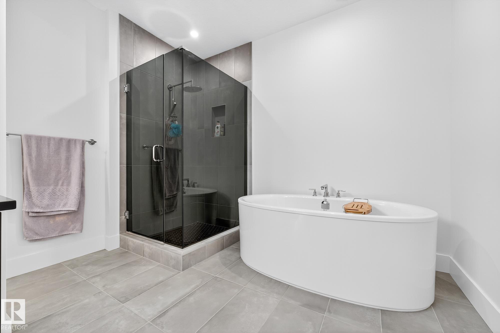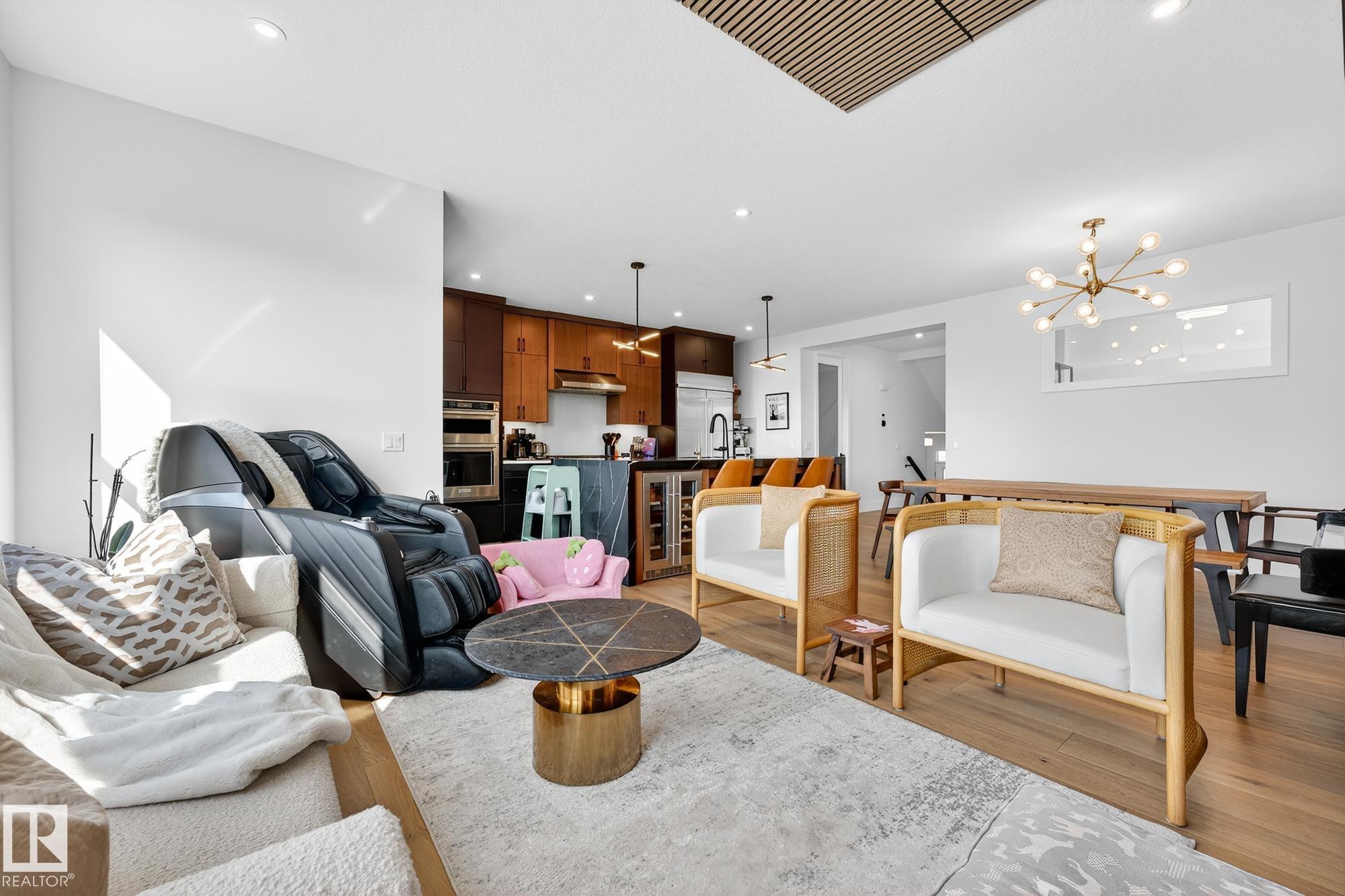 Stunning 2022 Jayman-built 5-level split in desirable Hawks Ridge! This 3 bed, 3.5 bath & 1 den home offers nearly 2,400 sq. ft. of living space with soaring 9'ceilings, 28 solar panels, and a walkout basement (11'ceilings) backing onto walking trails. Main floor features Scandinavian-inspired design with white oak engineered hardwood, black accent cabinetry, and quartz waterfall countertops. Chef’s kitchen packed with upgrades including S/S gas stove, built-in oven/microwave, extra wide refrigerator and dishwasher. All doors on the property are 8ft high, solid core doors. Expansive primary suite includes heated floors, towel warmer, soaker tub & walk-in shower. Upstairs bonus room plus 2 bedrooms & laundry room. Bright walkout basement with floor-to-ceiling windows and gorgeous trail views. Added comfort with central A/C, water softener, reverse osmosis and an EV charger! Truly a remarkable home in a sought-after community!