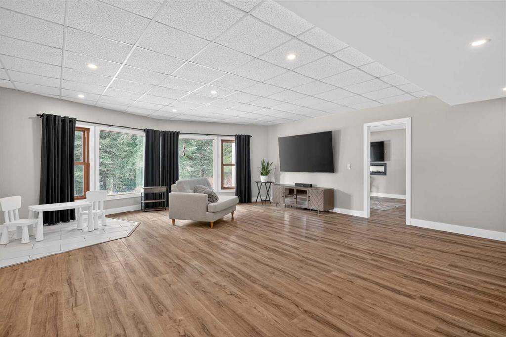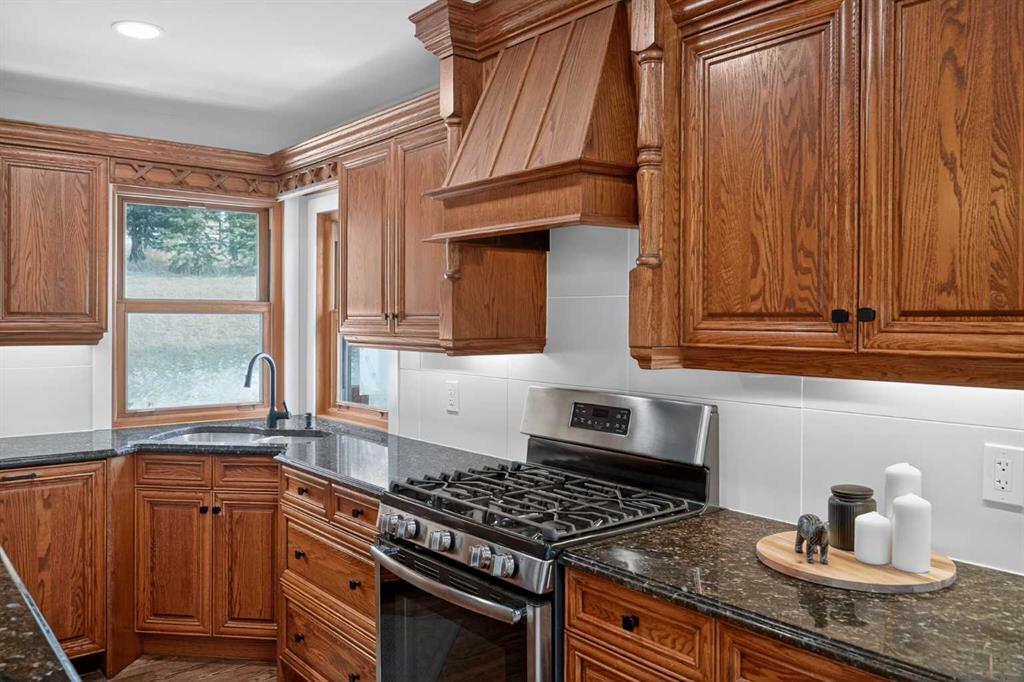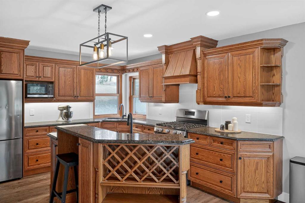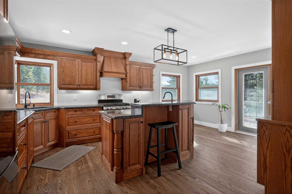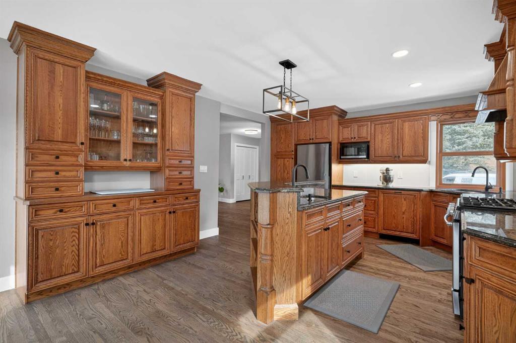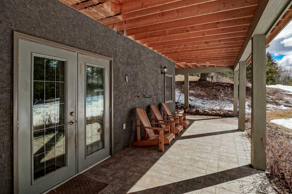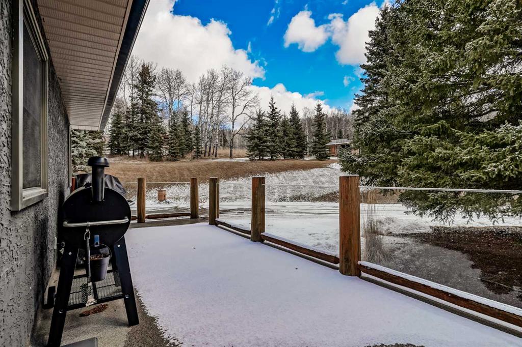 Discover your own private paradise on this stunning 19.85-acre estate, where the Dogpound Creek meanders through a park-like landscape at the rare convergence of lush forest, rolling foothills, and tranquil water features. This beautifully updated walkout bungalow offers a sprawling 4,195 square feet of developed living space, featuring 5 spacious bedrooms and 4 updated bathrooms that provide a cohesive feel throughout. Recent transformations include the addition of a second kitchen and a luxurious second primary suite in the walkout basement—perfect for multi-generational living—while the main level shines with stunning a-frame style living room overlooking your land, and a 2020 exterior overhaul consisting of a new roof, gutters, and a complete deck rebuild. Nestled within a forest of aspen, spruce, and pine, the property is a haven for local bird species and an equestrian’s dream, boasting full fencing, three paddocks, horse shelter, hay shed and an automatic watering system across beautiful undulating terrain. Perfectly positioned for families, you are located on bus route just 15 minutes from the highly regarded Westbrook School, and the home is rounded out by an oversized, heated attached triple garage. This rare sanctuary perfectly balances secluded country living with everyday accessibility, only 30 minutes to Cochrane, a lifestyle that is truly second to none.