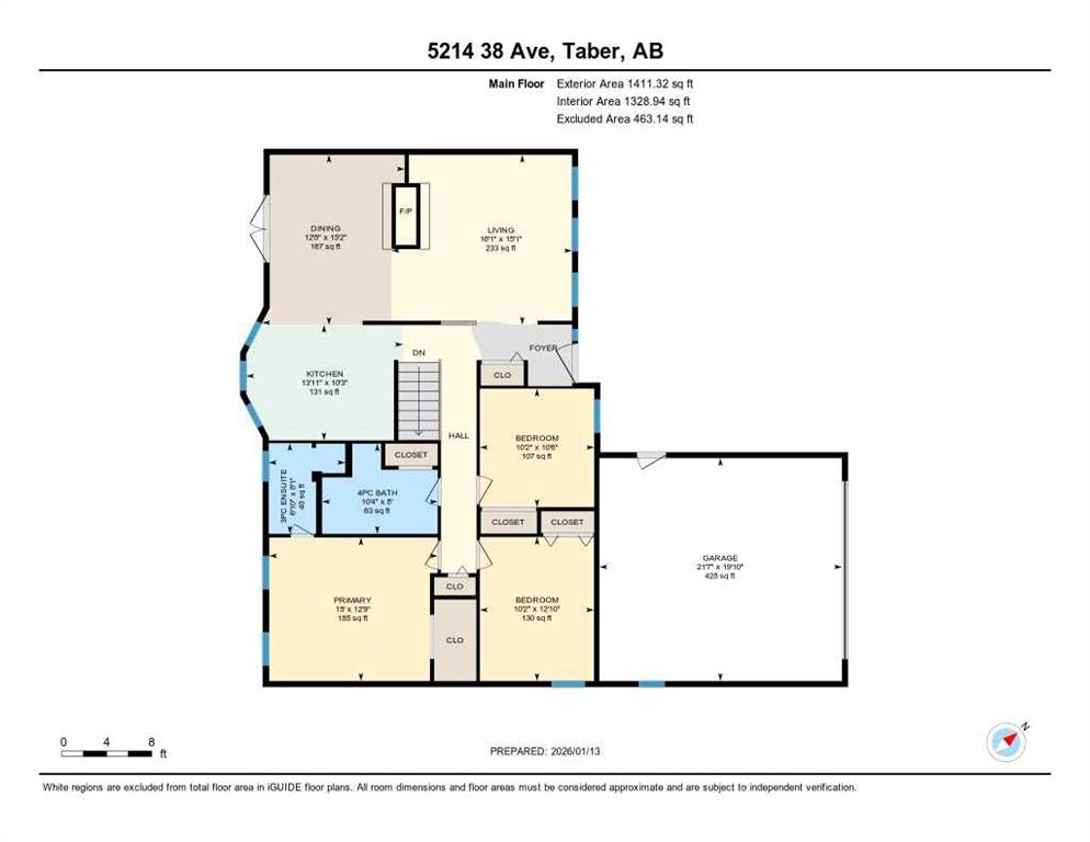 | 3pc Ensuite bath | 6`10" x 8`1" | Main |