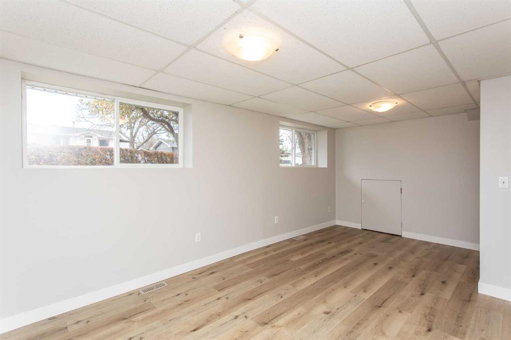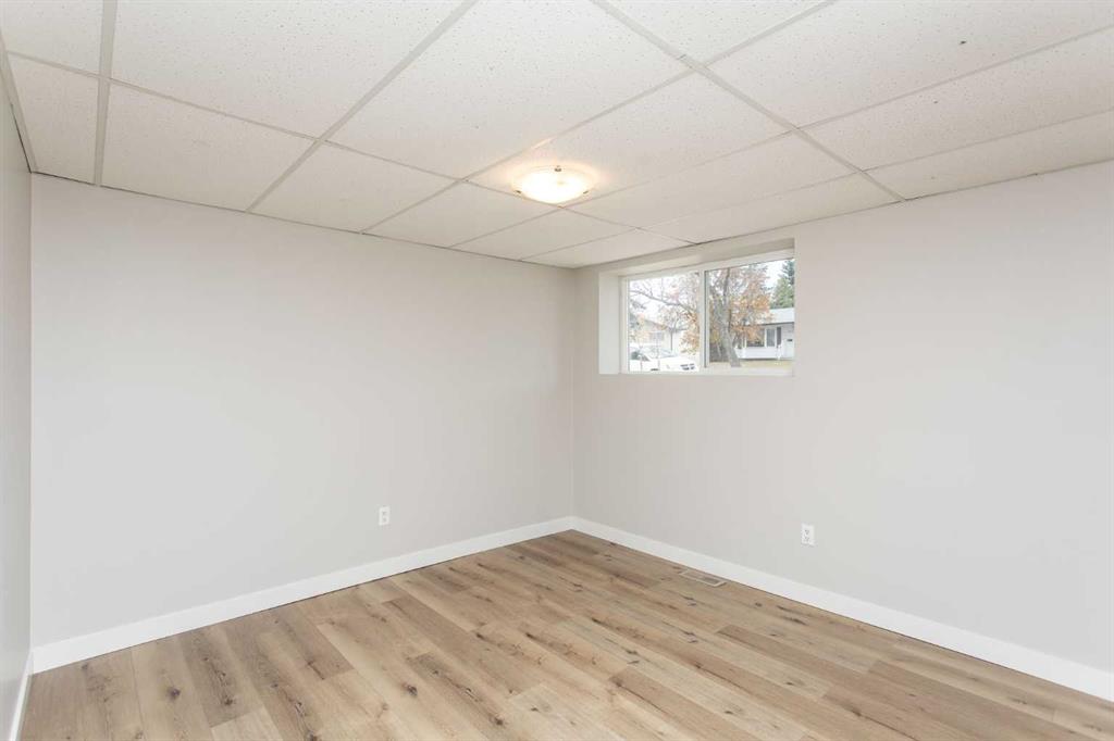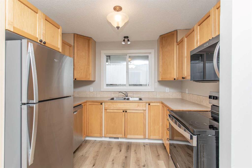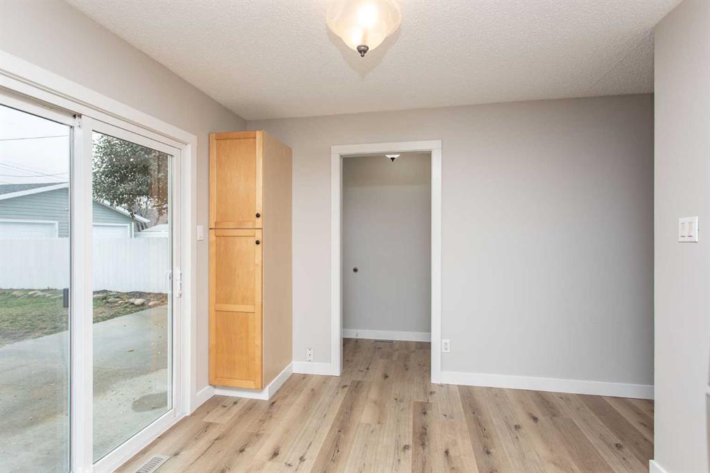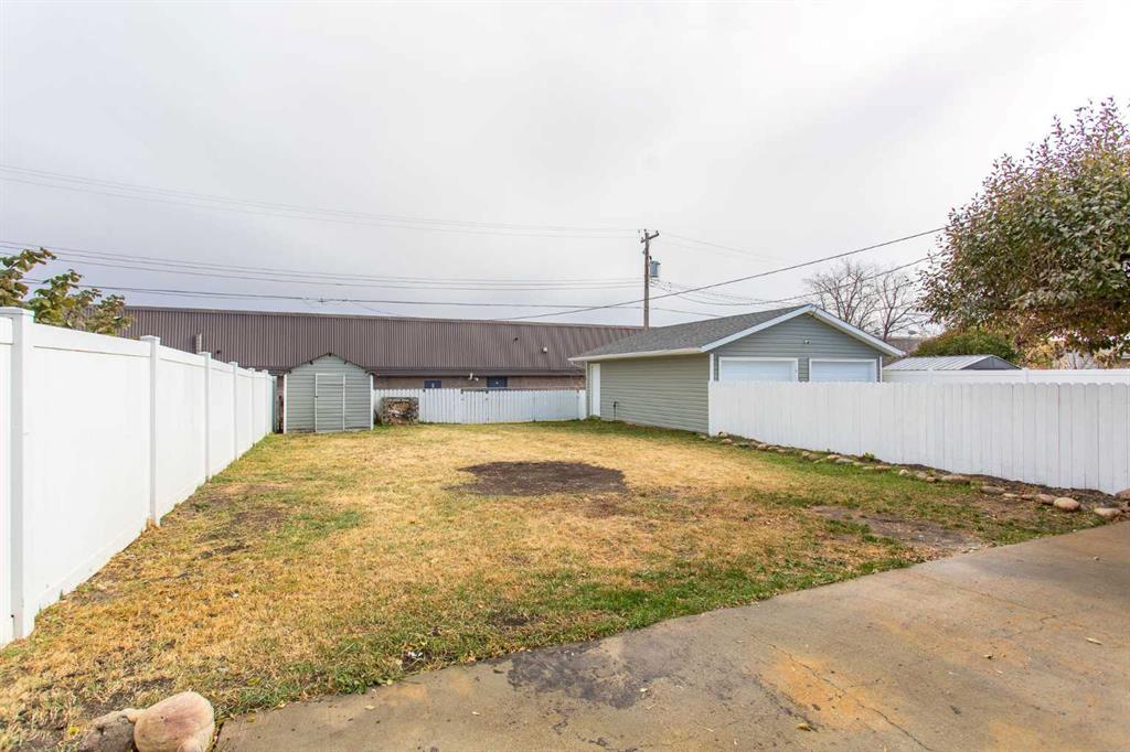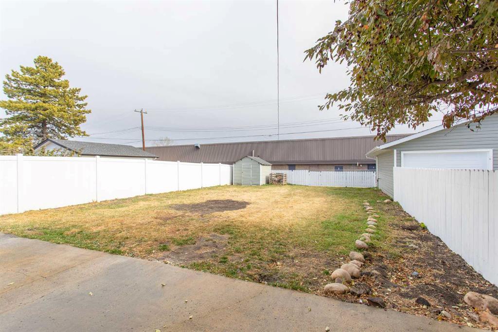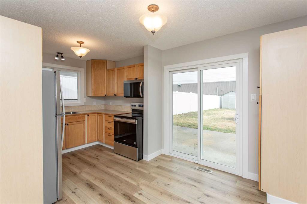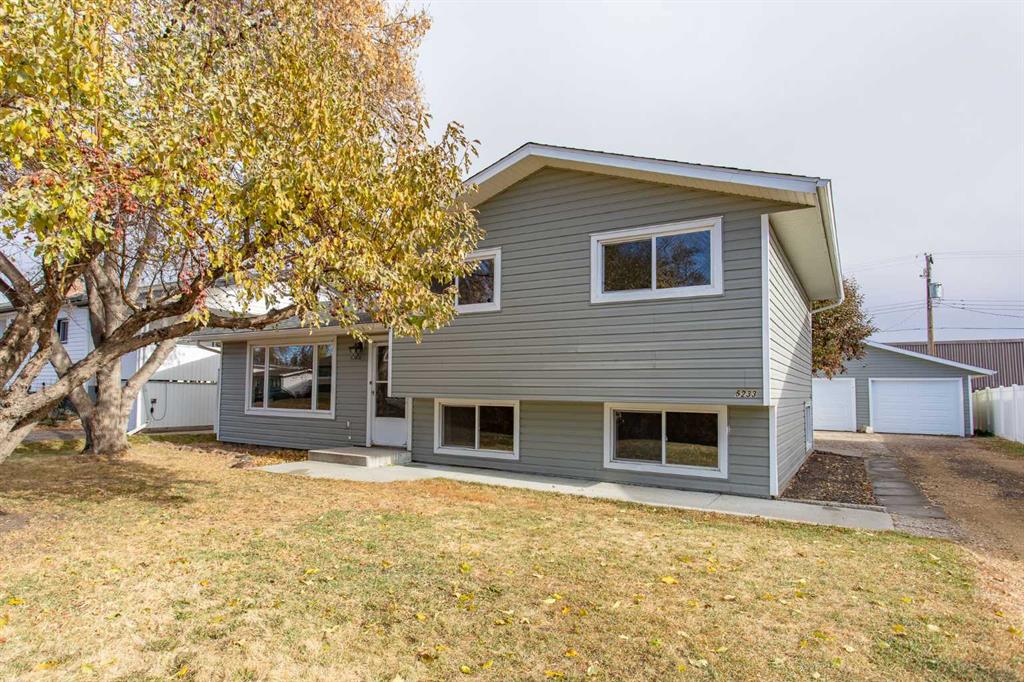 This move-in ready, three-level split home is available for immediate possession. Recently undergoing extensive renovations, it now offers a fresh interior with new flooring, paint, trim, and stainless steel kitchen appliances. Located in the heart of Lacombe, the property is within walking distance to downtown, shopping, schools, and walking trails. Notable updates include roof and siding replacement with 1 1/2" styrofoam in 2016, window upgrades in 2005, garage doors installed approximately three years ago, and fence repainting this Fall. The main floor features a spacious living room separated from the kitchen and dining areas. Upstairs comprises the primary bedroom, two additional bedrooms, and a four-piece bathroom. The third level offers a three-piece bathroom, family room, and a versatile room suitable for use as a den, playroom, or esthetics/hair salon, complete with a sink. The laundry and utility rooms are also located on this level, which benefits from large windows providing ample natural sunlight. Additional amenities include a double detached garage (heater not operational) with space for two vehicles, back alley access, off-street parking, a fully fenced yard, and mature landscaping in the front yard.