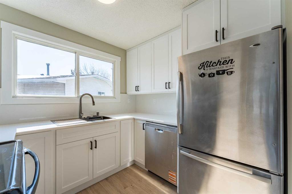 Ideal for first-time buyers or investors, this newly renovated half duplex offers exceptional value in a quiet cul-de-sac. The main floor features 3 bedrooms and 1.5 bathrooms, including a primary bedroom with access to a private deck—perfect for enjoying your morning coffee. Recent updates include new vinyl plank flooring, fresh paint, and a beautifully upgraded kitchen complete with custom soft-close cabinetry, quartz countertops and backsplash, a new dishwasher, over-the-range microwave, and a stylish sink with a unique waterfall feature. The fully developed basement adds even more functional living space, offering a large family room, flex room, 2-piece bathroom, laundry area, and two storage rooms. It has also been refreshed with new carpet, drop ceiling, and modern pot lighting. Outside, you’ll find a raised deck, shed, and a large parking pad off the back alley with ample space for your vehicle or RV. Conveniently located near schools, transit, and amenities, with quick access to Deerfoot Trail and Fish Creek Park, this home is move-in ready and a fantastic opportunity.