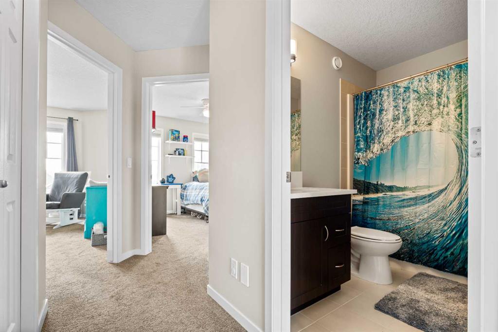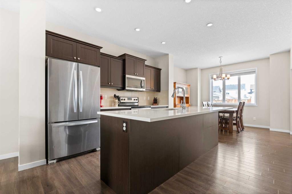 Welcome to the kind of home where life feels a little simpler, a little quieter, and a lot more connected. Tucked onto one of the quietest streets in Crossfield, this beautifully maintained family home sits on a lot that’s larger than most in the area at over 4100 ft2, offering extra space to relax, play, and grow. With the perfect balance of small-town charm and everyday convenience, you’re just steps from parks, pathways, and schools. Inside, the open concept main floor is designed for how families actually live. The kitchen anchors the space with a large island, quartz countertops, and plenty of prep and storage space, making it easy to cook, gather, and stay connected. The adjoining dining and living areas are bright and inviting, creating a natural flow for both everyday living and hosting friends and family. Upstairs, you’ll find three comfortable bedrooms, including a primary bedroom retreat complete with a walk-in closet and private ensuite. The addition of second-floor laundry adds a level of convenience that quickly becomes a must-have in daily life. Upgrades like Central A/C, ceiling fans in the bedrooms and a heat exchange fan in the bathroom help keep the home comfortable year-round. Step outside and you’ll see where this home really shines. The backyard has been thoughtfully designed with families in mind, featuring a newly built garage, added shed, stepping stone pathways, and a natural gas line on the deck for easy summer BBQs. With a paved back alley and plenty of space to play, relax, and entertain, it’s a yard that grows with you. The location ties it all together. Just steps to Amery Park and surrounded by green space, playgrounds, and walking paths, this is a neighbourhood where kids can play freely and neighbours still know each other. With schools nearby and quick access to Highway 2, you’re perfectly positioned for an easy commute to Airdrie or Calgary while still enjoying the pace and feel of a close-knit community. If you’ve been looking for a move-in ready family home in a newer neighbourhood where lifestyle and livability come first, this is one worth seeing in person.