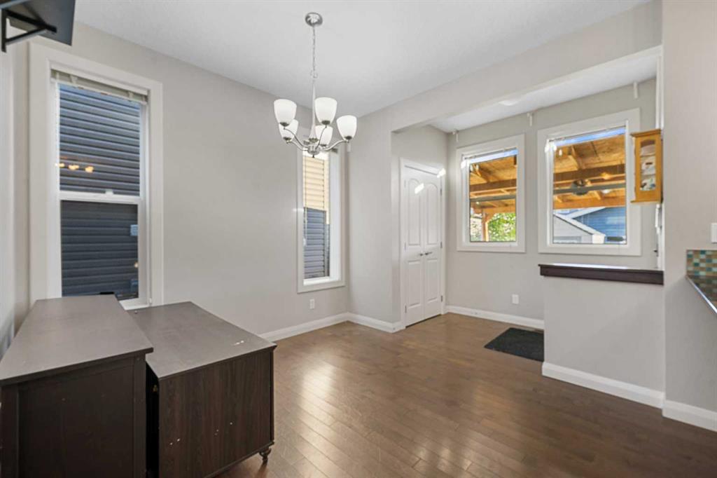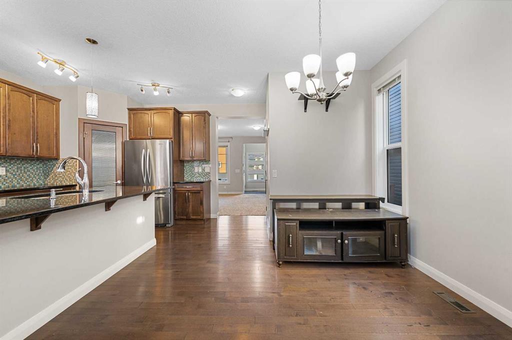 ** 2 Bedroom Basement Suite(illegal) ** Move-in Ready | Gorgeous Family Home | 1,478 SqFt | Open Floor Plan | High Ceilings | Sparkling Kitchen | Granite Countertops | Stainless Steel Appliances | Corner Pantry | Kitchen Breakfast Bar with Barstool Seating Area | Ample Natural Light | Fireplace | 3 Upper Level Spacious Bedrooms | Upper Level Laundry | Separate Entry to Basement | Basement Laundry | Great Open Floor Plan | Gorgeous Backyard | Covered Deck | Fully Fenced | Rear Double Detached Garage | Alley Access. Welcome to this beautifully upgraded 5-bedroom, 3.5-bathroom detached home in the highly sought-after community of Redstone. Perfectly positioned on a conventional lot, this elegant home offers 1,478 sq ft of refined above-grade living space, plus a separately accessible, fully developed 2-bedroom basement suite (illegal)—ideal for extended family or future rental potential. Step inside to discover a bright and spacious open-concept layout with soaring 9-ft ceilings and oversized windows that flood the home with natural light. The heart of the main level is the gourmet kitchen, featuring gleaming granite countertops, a large kitchen breakfast bar with barstool seating, stainless steel appliances, a gas stove a corner pantry, and stylish cabinetry—perfectly designed for both entertaining and everyday living. A cozy electric fireplace adds warmth and sophistication to the living room, while the adjacent dining area flows seamlessly to the outdoors. Step outside to your covered rear deck with a BBQ Gas line and put your grilling to the test! The main level is complete with a 2pc bath. Upstairs, the spacious primary bedroom offers a private retreat complete with a 4-piece ensuite and walk-in closet. Two additional well-proportioned bedrooms, a modern 4-piece main bath and hall laundry complete the upper level. The illegal basement suite is accessed via a separate side entrance and features a thoughtfully laid-out 2-bedroom floor plan, its own laundry, open living/dining space, and high-quality finishes—providing versatile space for multi-generational living or future income. Additional highlights include a high-efficiency furnace, a large hot water tank, a spacious rear covered deck, and a double detached garage. Located just minutes from the Calgary International Airport, major shopping centres, grocery stores, and top-rated schools, this home offers unbeatable convenience in a thriving community. A perfect blend of luxury, functionality, and location—don’t miss your opportunity to make this exceptional home yours.