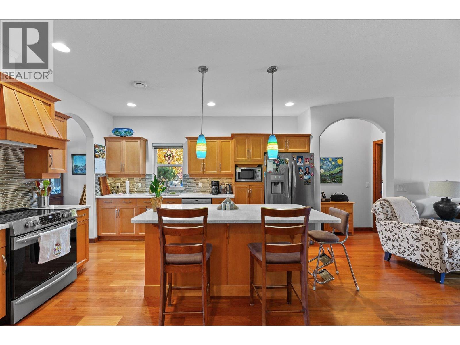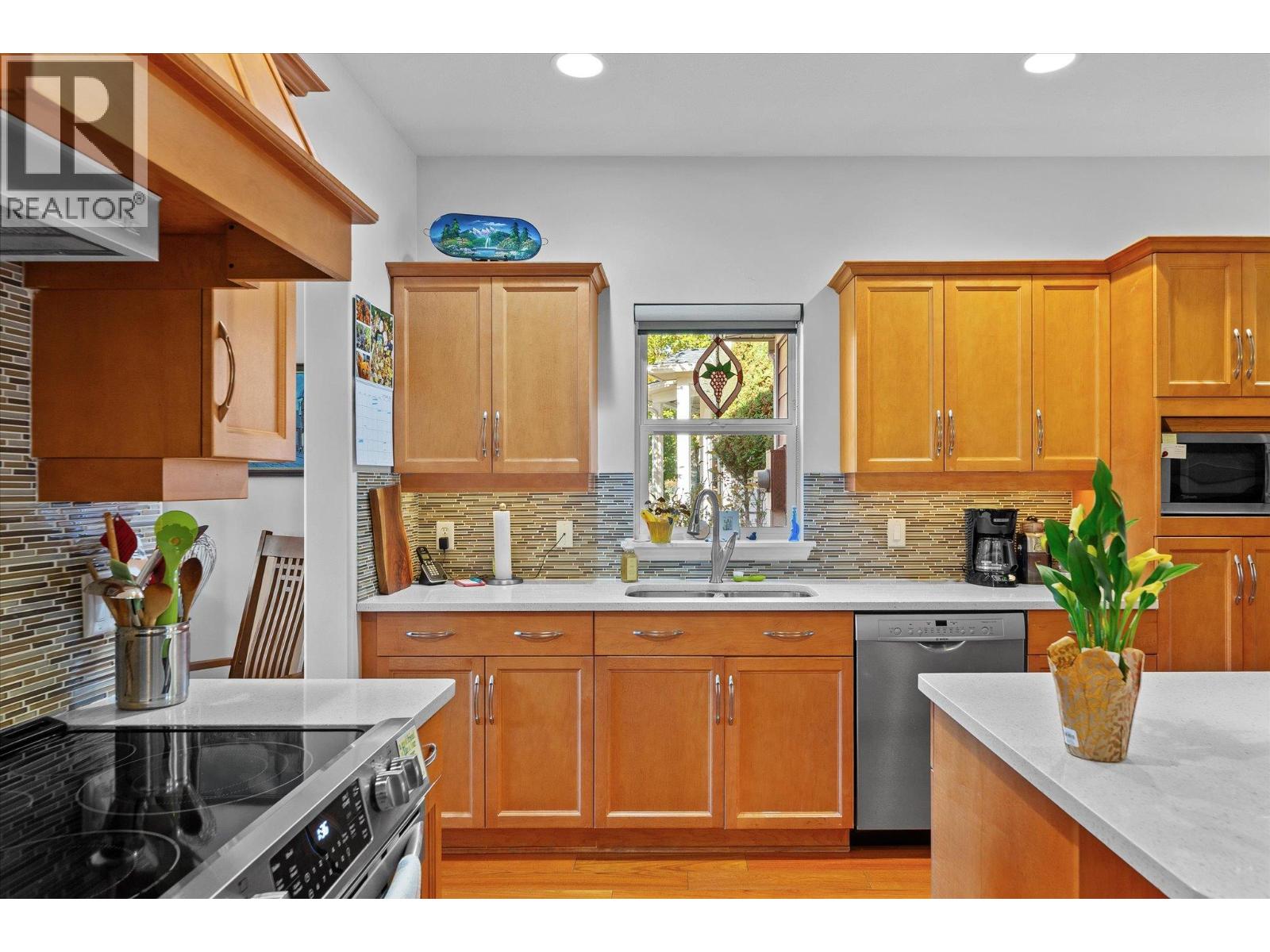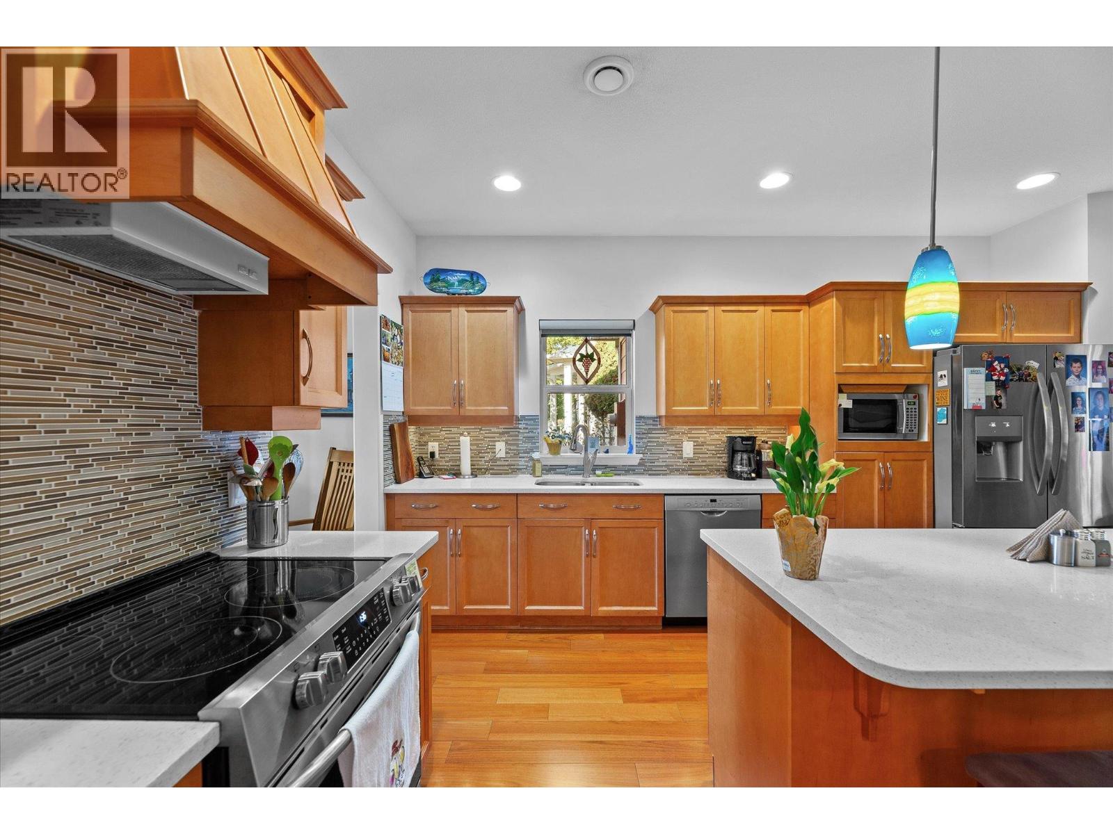Experience the quintessential Kettle Valley lifestyle in this charming single-family 3 bed 2 bath home. Boasting perfect curb appeal with elegant stone detailing on the front terrace, this residence offers compact yet open-concept living. Check out the wine shrine to store and display your favorite Okanagan vintages! Featuring three comfortable bedrooms, 9 foot plus ceilings, island kitchen, quartz counters, hardwood floors, stainless steel appliances, real wood doors and trim and a wonderful covered terrace (18' x 9'), it provides ample outdoor enjoyment with additional lawn and garden space. The low-maintenance front yard complements a rear garden with complete privacy. This property presents an excellent alternative to strata living, offering control over your environment. A double detached garage (21' x 20') provides generous space for vehicles or hobbies. This meticulously maintained home offers a very livable floor plan, ideal for a single person, couple, or small family. All measurements from i-guide. Please verify if important.