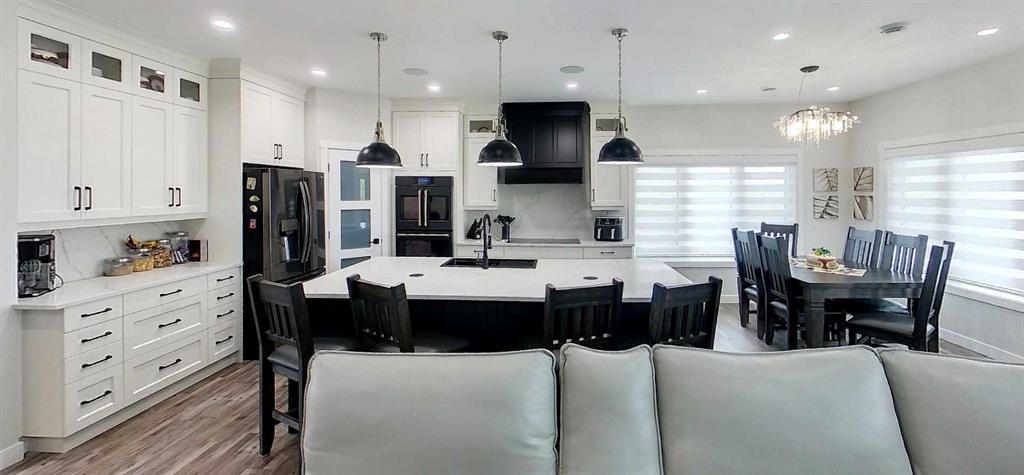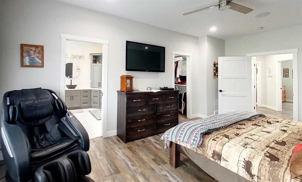 Drive through the security gates and experience luxury acreage living just minutes from Edson on 9.81 acres, with pavement right to your doorstep. This rare and extraordinary property offers exceptional versatility with TWO custom executive homes, TWO triple garages (one oversized to fit six vehicles), an Integrity Post Frame commercial-grade shop with 18-ft ceilings, three 16-ft overhead doors, in-floor heating, and a private pond perfect for year-round enjoyment. The first residence, built in 2023, is a stunning 3-bedroom, 2.5-bathroom custom smart home loaded with high-end features. It boasts a designer kitchen with a large pantry, under-cabinet lighting and plug-ins, a center island with sink, and beautiful custom cabinetry throughout. The living room showcases a striking fireplace with built-in storage, while the spacious primary suite includes a spa-inspired 5-piece ensuite with a glass steam shower, corner jetted tub, and walk-in closet. Additional features include in-floor heat with forced air backup, central A/C, remote blinds, automatic lighting in closets and pantry, Gemstone exterior lighting, a stamped concrete patio area wired for a hot tub, and a triple attached garage to complete this executive home. The second home, built in 2012, is a well-appointed 4-bedroom, 3.5-bathroom walk-out family home. Designed with comfort in mind, it features vaulted ceilings with warm wood accents, a main floor primary suite with 3-piece ensuite, main floor laundry, and a bright open-concept kitchen and living area. The upper level includes two more bedrooms and a loft-style family room, while the fully finished walk-out basement adds an additional bedroom, family room, bath, and direct access to the serene pond. Outside, enjoy a beautifully landscaped and expansive yard offering the perfect blend of privacy and space to relax, entertain, and play. The private pond provides skating in winter, kayaking in summer, and picturesque views all year long. Whether you're seeking multi-generational living, a home-based business setup, or simply the chance to live large surrounded by nature, this property delivers it all. Feature Sheet available!