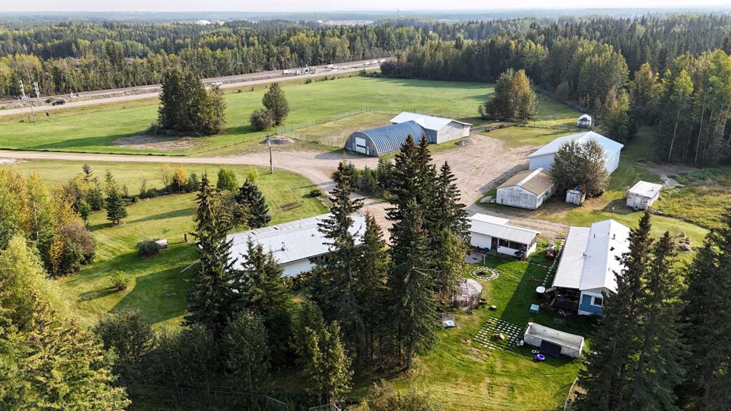 Great location, huge potential! This 29.93 acre property is located just east of Edson on Highway 748 E (Bear Lake Road) with pavement to the driveway. A great set up for those that want acreage living or to set up a business. The property is zoned Rural District, which offers flexibility on uses. There’s a 3 bay, fully finished 60’ x 40’ shop with overhead doors, radiant and in-floor heat, and a floor drain. The second shop is a heated 60’ x 40’ Quonset with a bathroom, kitchen area and has a septic holding tank and chain linked fenced compound. The back portion of the building has an attached 32’ x 52’ shop, with an overhead door, a concrete floor and a leanto for RV storage. Radiant heater in place but not operational at present. The main house is a ranch style home that sits on concrete pilings and features 1,975 sq. ft. of living space plus a covered deck and patio area. There’s 3 bedrooms, a 4-piece bathroom with corner soaker tub and a separate shower and a 2-piece bathroom in the laundry room. Large living area with a full kitchen, a dining room, a living room and a bonus room at the front of the home. At the back of the home there’s a spacious family room that would make a perfect home office at it has separate exterior access. The second dwelling is an older mobile home that’s located behind the main home. With a little TLC this would make a great spot for additional accommodation or office space. The heated pump house hosts the artesian well and at the back of the building there’s a set up for an outdoor kitchen/entertainment space. There’s additional storage workshop space in the 39’ x 22’ powered shed. Underground power to all buildings from the main pole. The entire property is fenced with page wire, there’s a driveway gate and lots of pasture areas as well as treed/bush areas. This is an Estate Sale and is sold as is/where is.